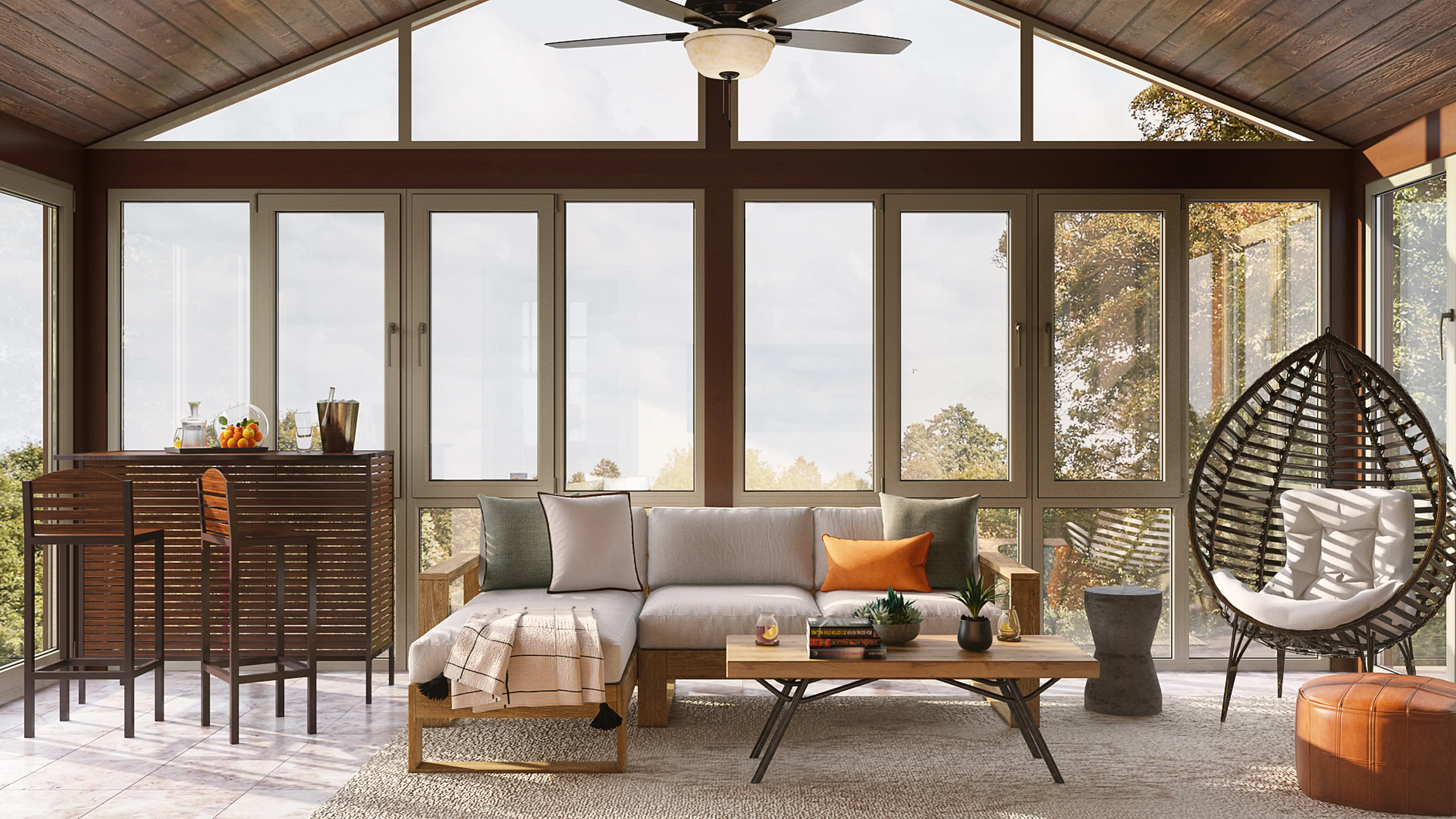 For this room, Nancy selected outdoor tables and coffee tables from Lamps Plus and Home Depot. Discover Furniture design inspiration on Havenly.