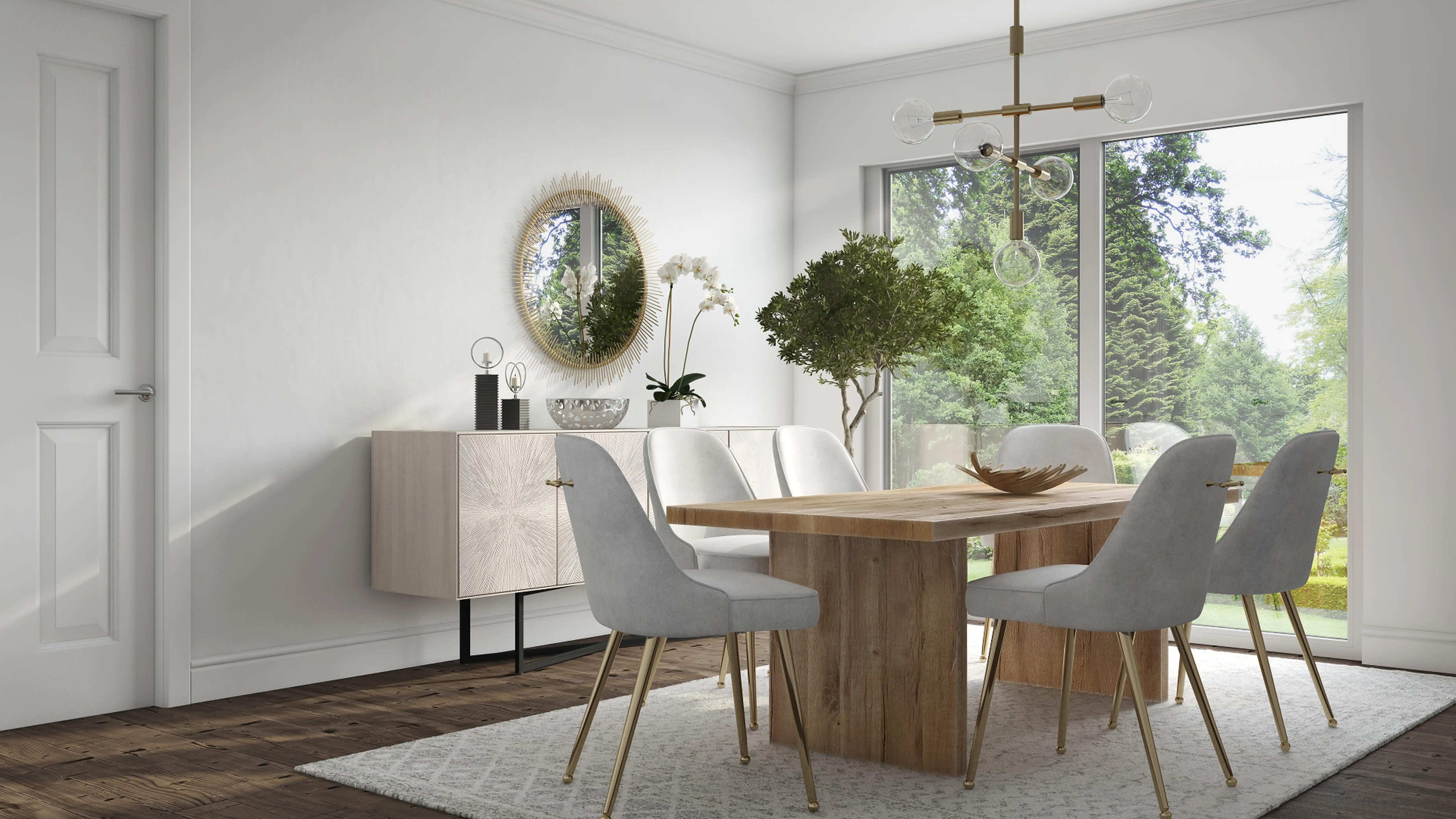 No room is complete without plants and mirrors! Mixing up polyester, plastic, iron wire, iron, wood, and glass with white and antique gold helps to add the finishing touches to the Dining Room. Discover Decor & Pillow design inspiration on Havenly.