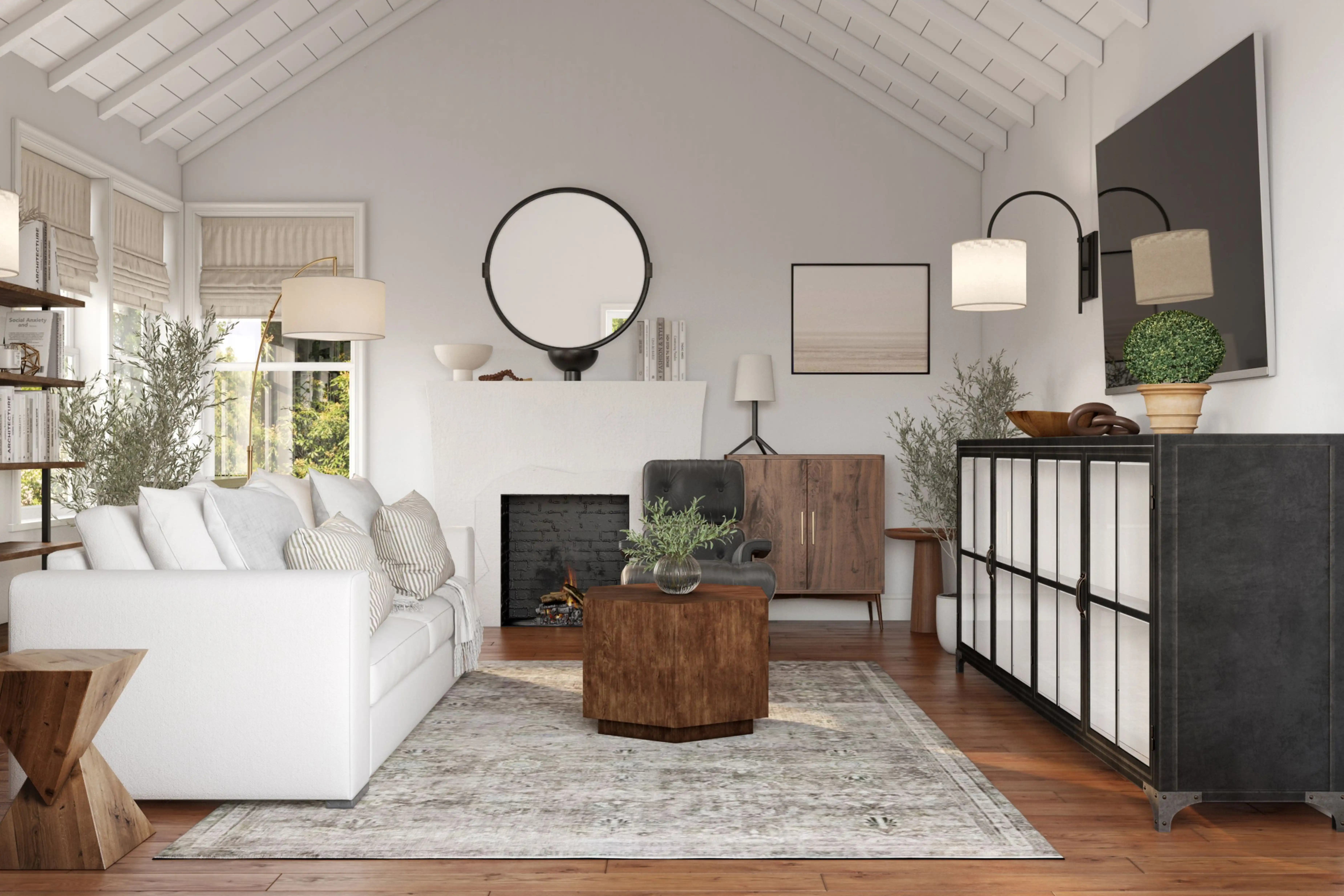 For this room, Nicole selected end tables, media storage cabinets, and racks from Wayfair, Crate, and Barrel. Discover Furniture design inspiration on Havenly.
