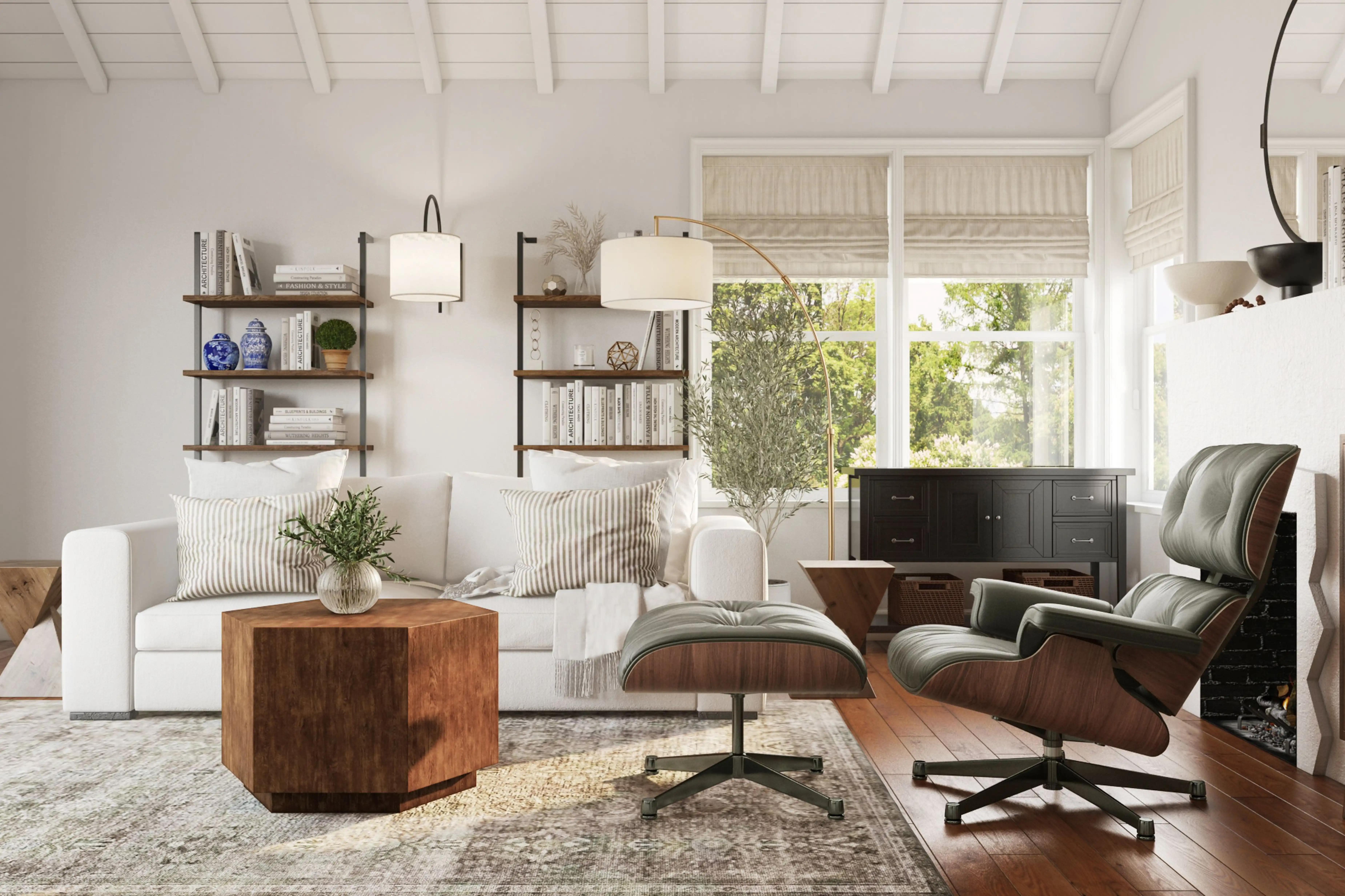 To brighten the design, modern wall light fixtures and lamps were added to the room. Discover Lighting design inspiration on Havenly.