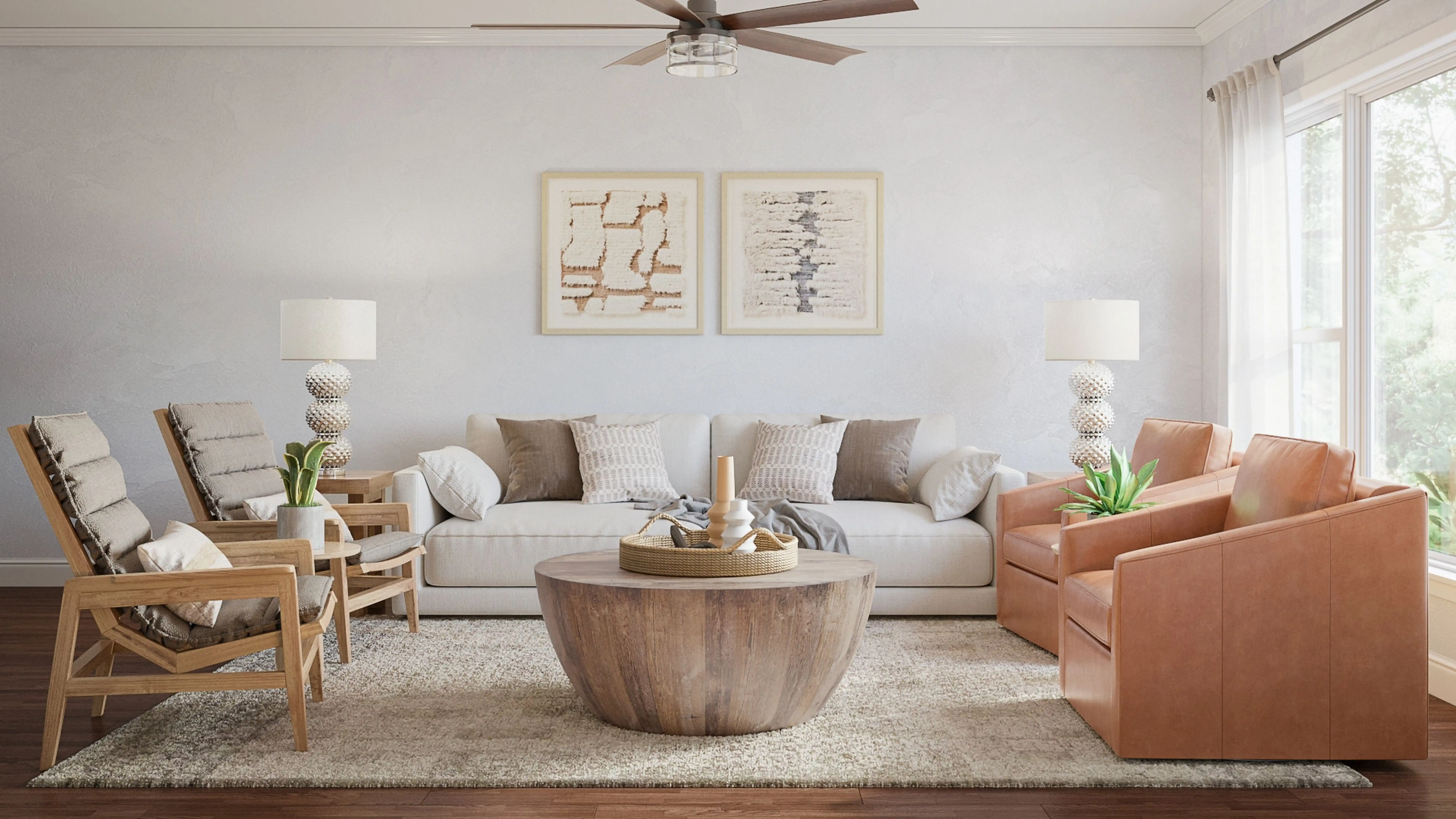 For this Living Room, Shauna selected coffee tables, arm chairs, recliners, and sleeper chairs from Uttermost and Pottery Barn. Discover Furniture design inspiration on Havenly.