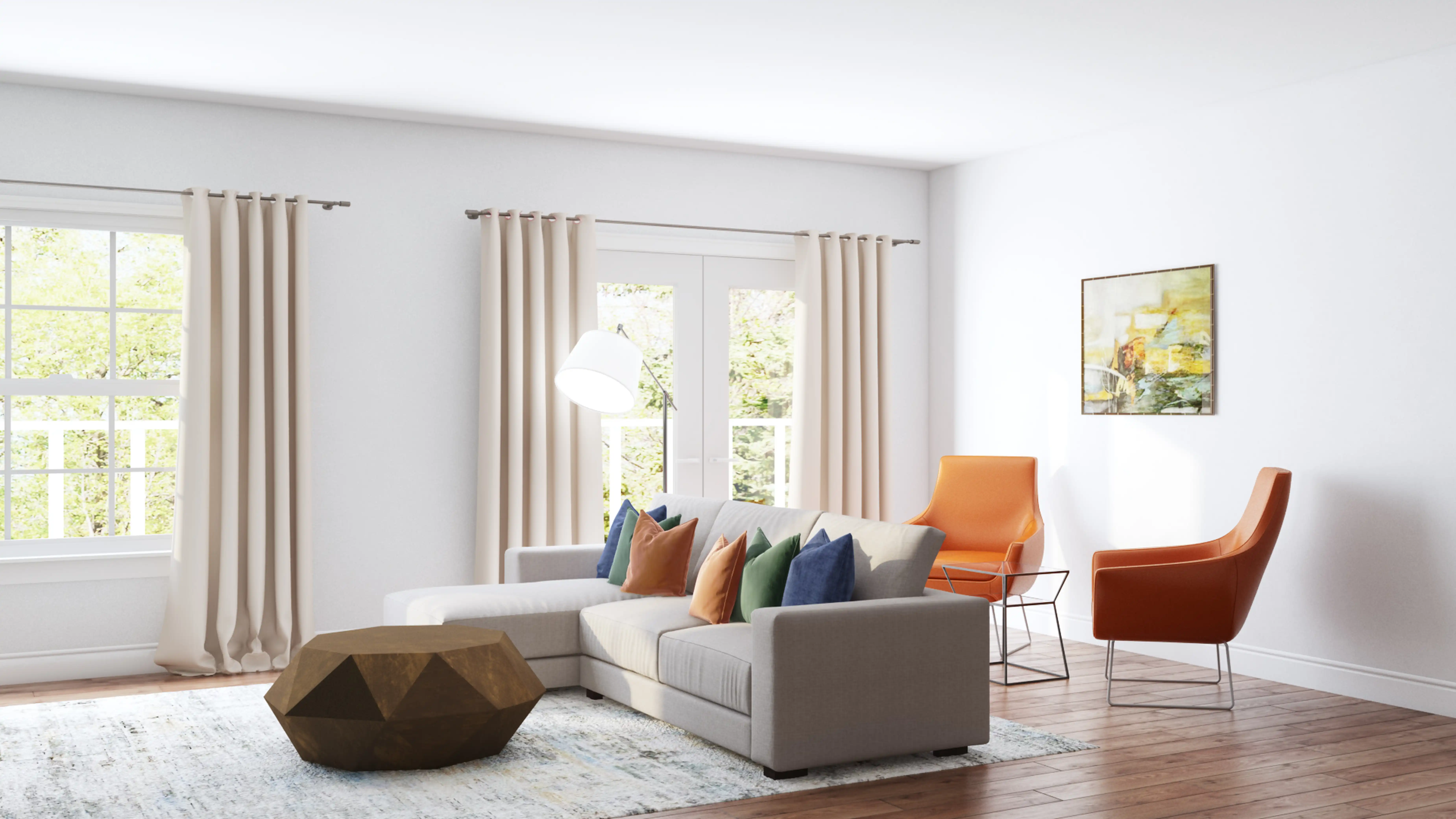 The rug in this space from Wayfair helps add a variety of colors to the room. Discover Rug design inspiration on Havenly.