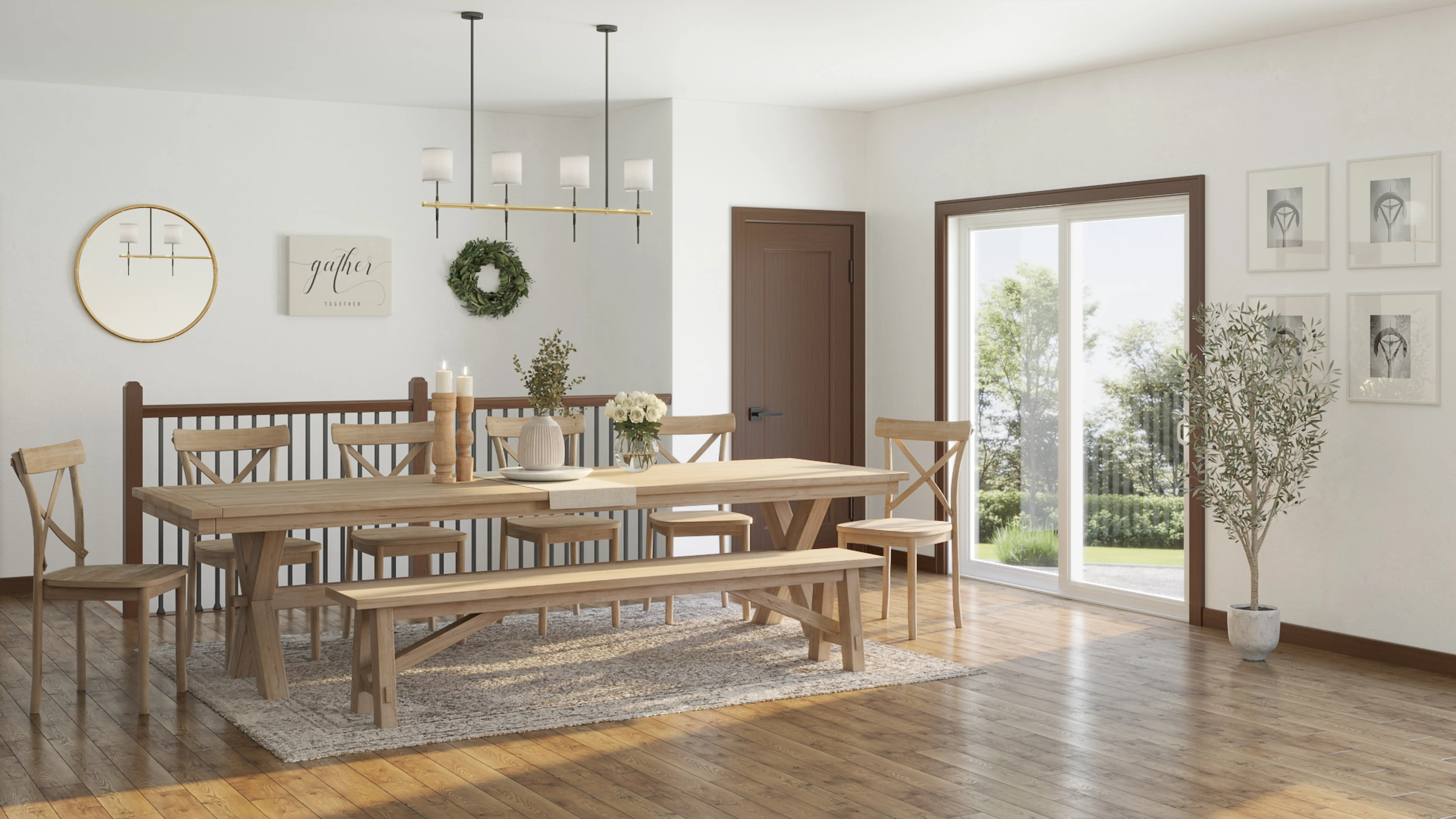 For this Dining Room, Priscila selected benches, kitchen, and dining room tables from Pottery Barn and Wayfair. Discover Furniture design inspiration on Havenly.