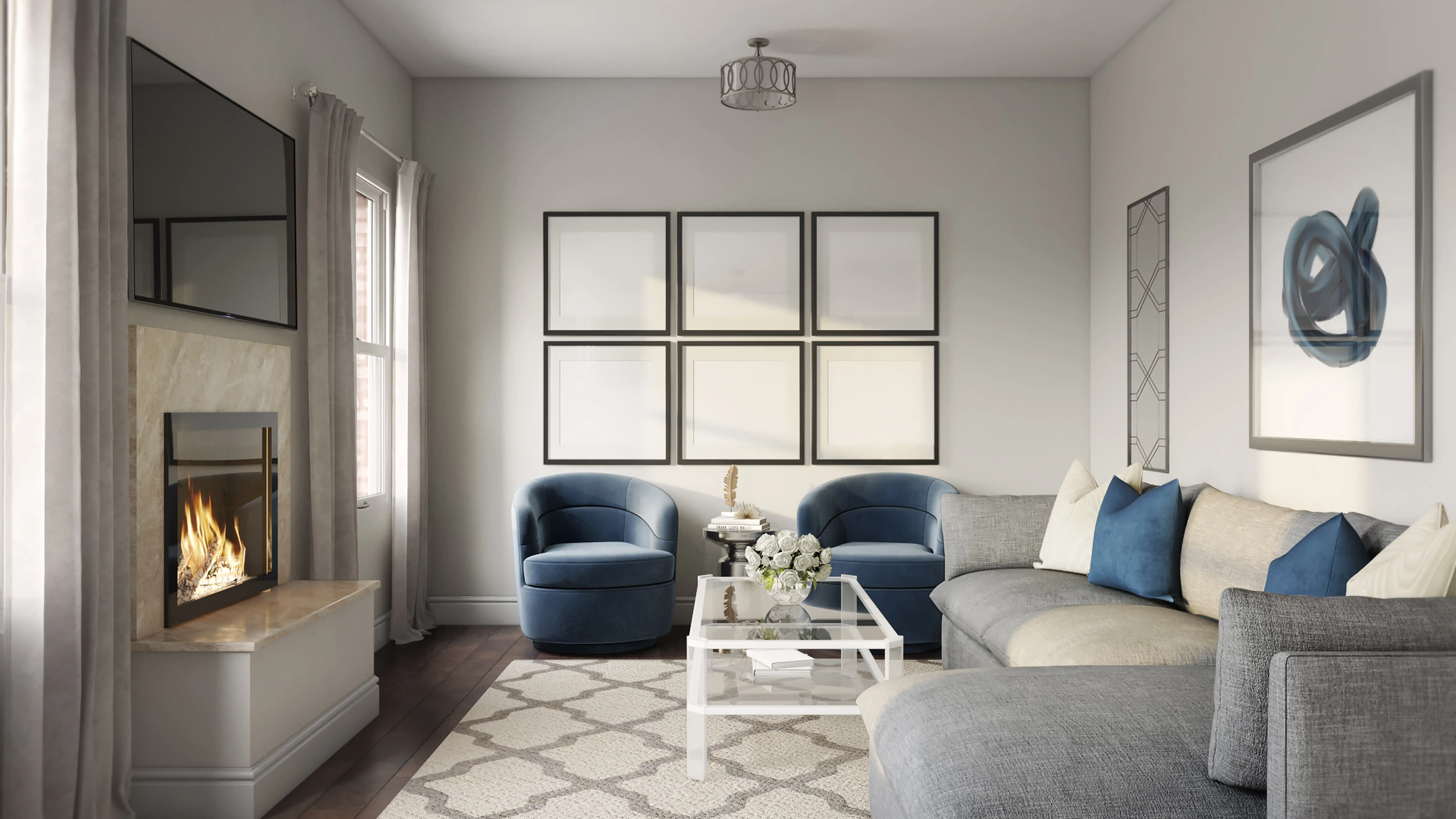 To brighten the design, Glam chandeliers were added to the room. Discover Lighting design inspiration on Havenly.