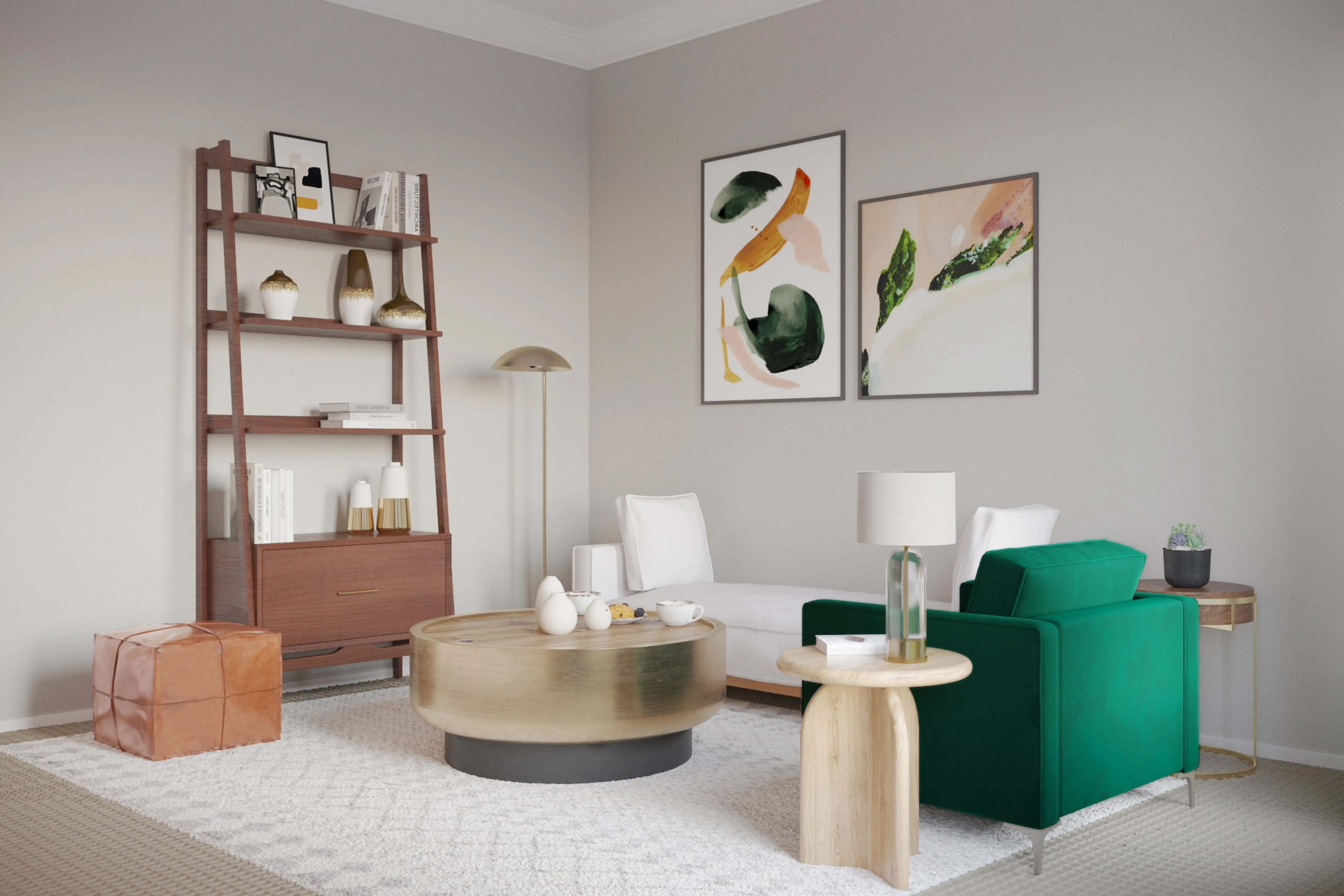 For this room, Marisol selected poufs, bookcases, and standing shelves from CB2 and West Elm. Discover Furniture design inspiration on Havenly.
