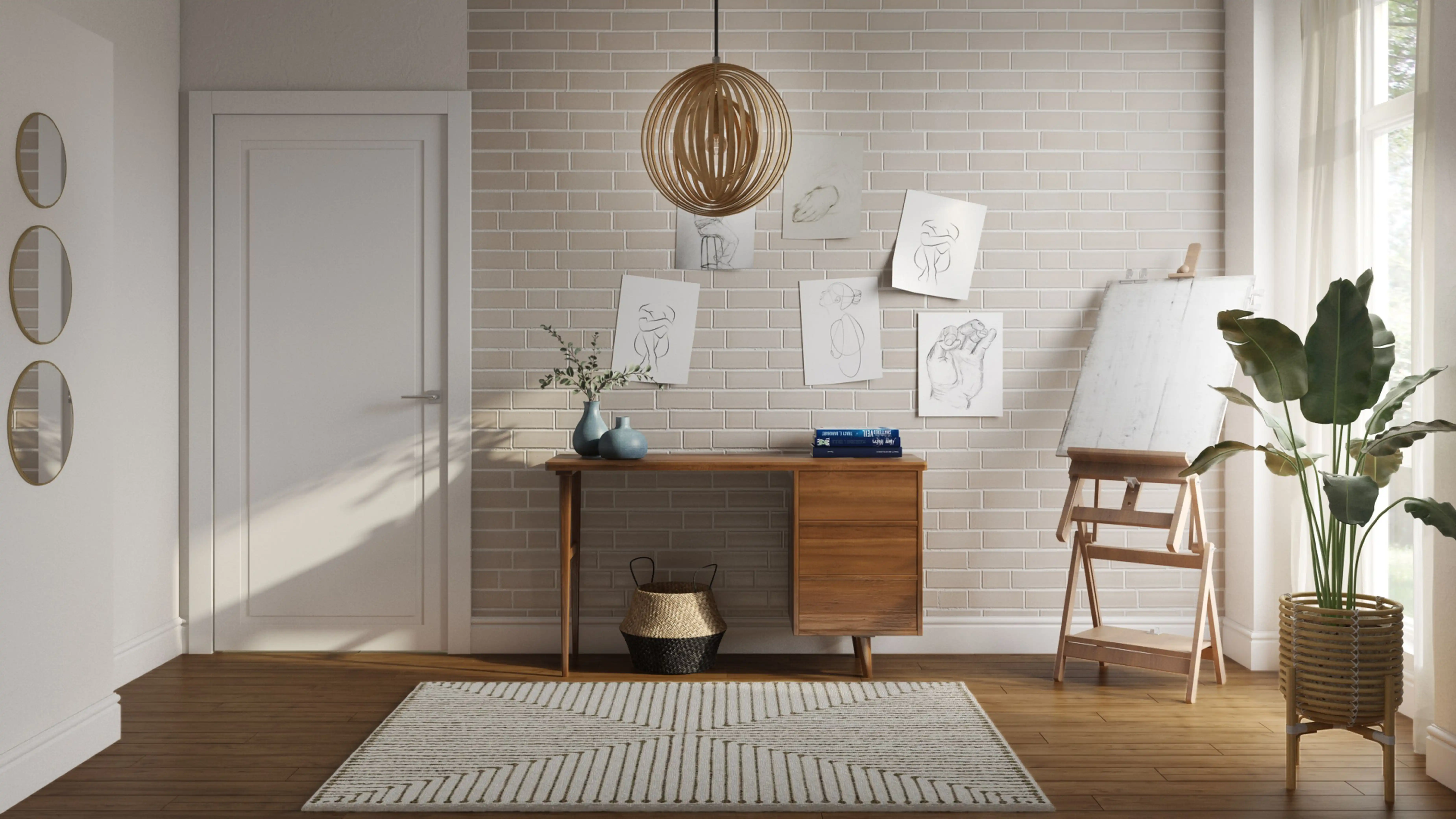 No room is complete without curtain, drape rods, and artificial flora! Mixing up metal and plastic with light gold and green helps to add the finishing touches to the Office. Discover Decor & Pillow design inspiration on Havenly.
