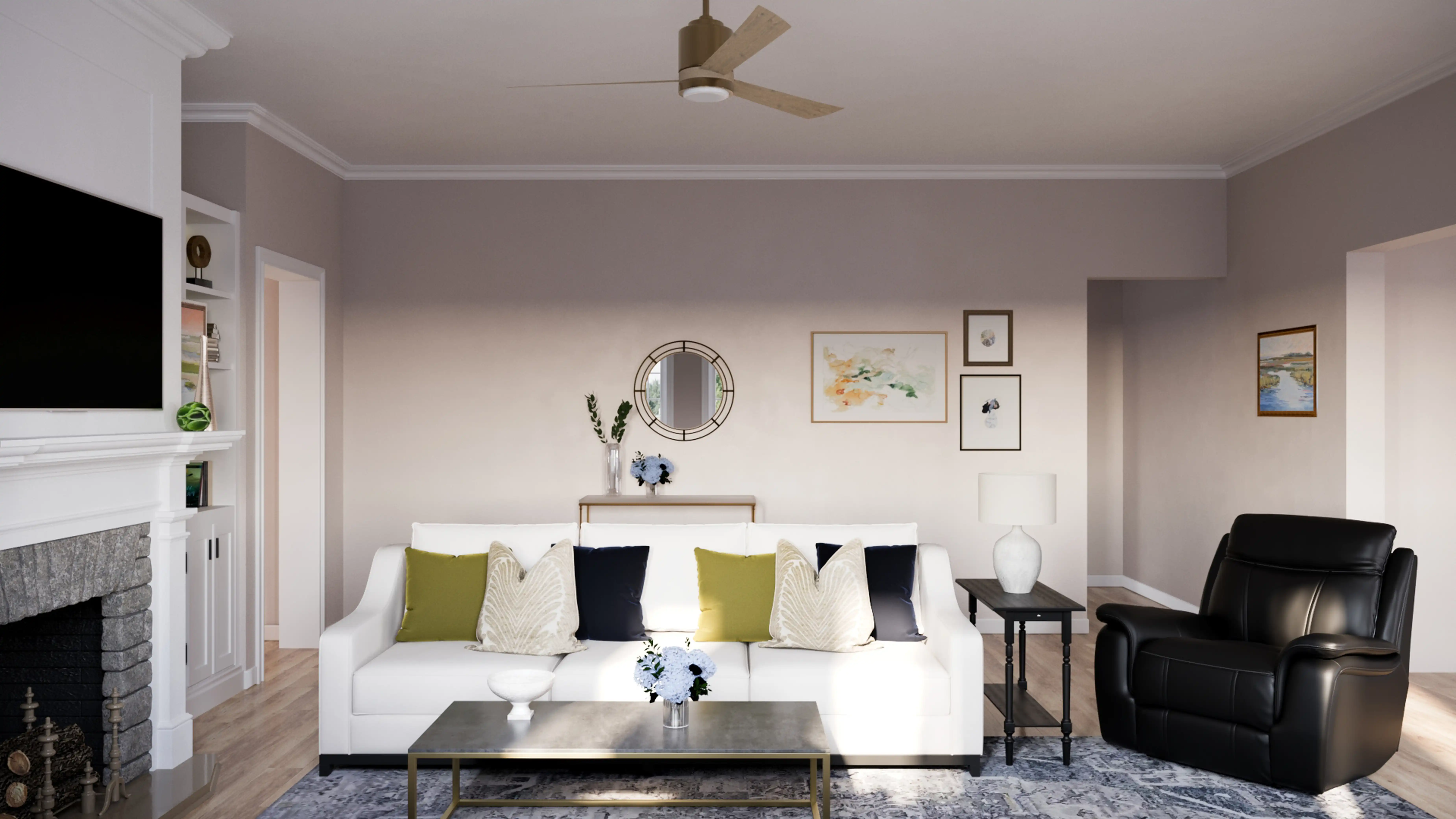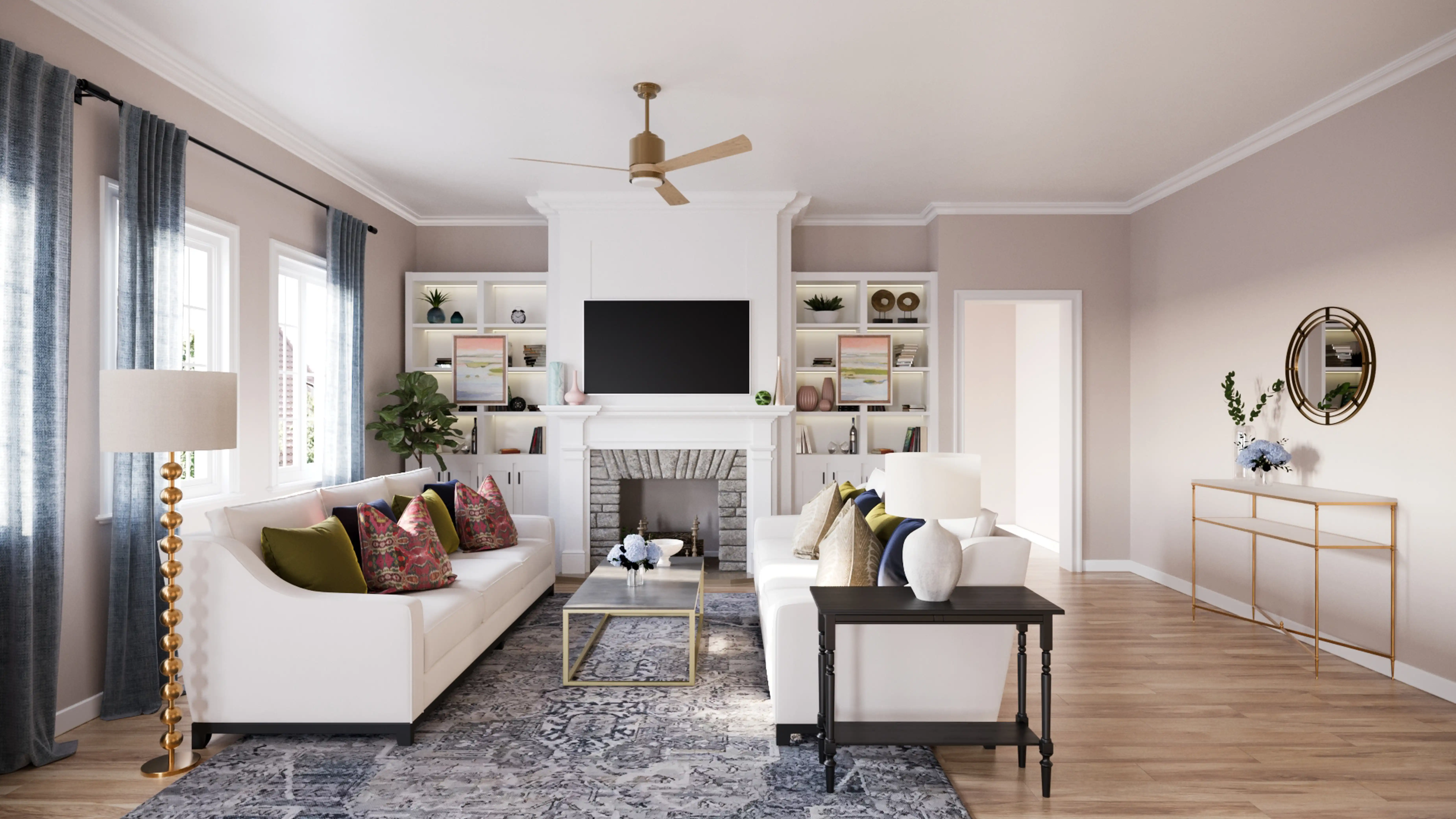 To brighten the design, Classic lamps and ceiling light fixtures were added to the room. Discover Lighting design inspiration on Havenly.