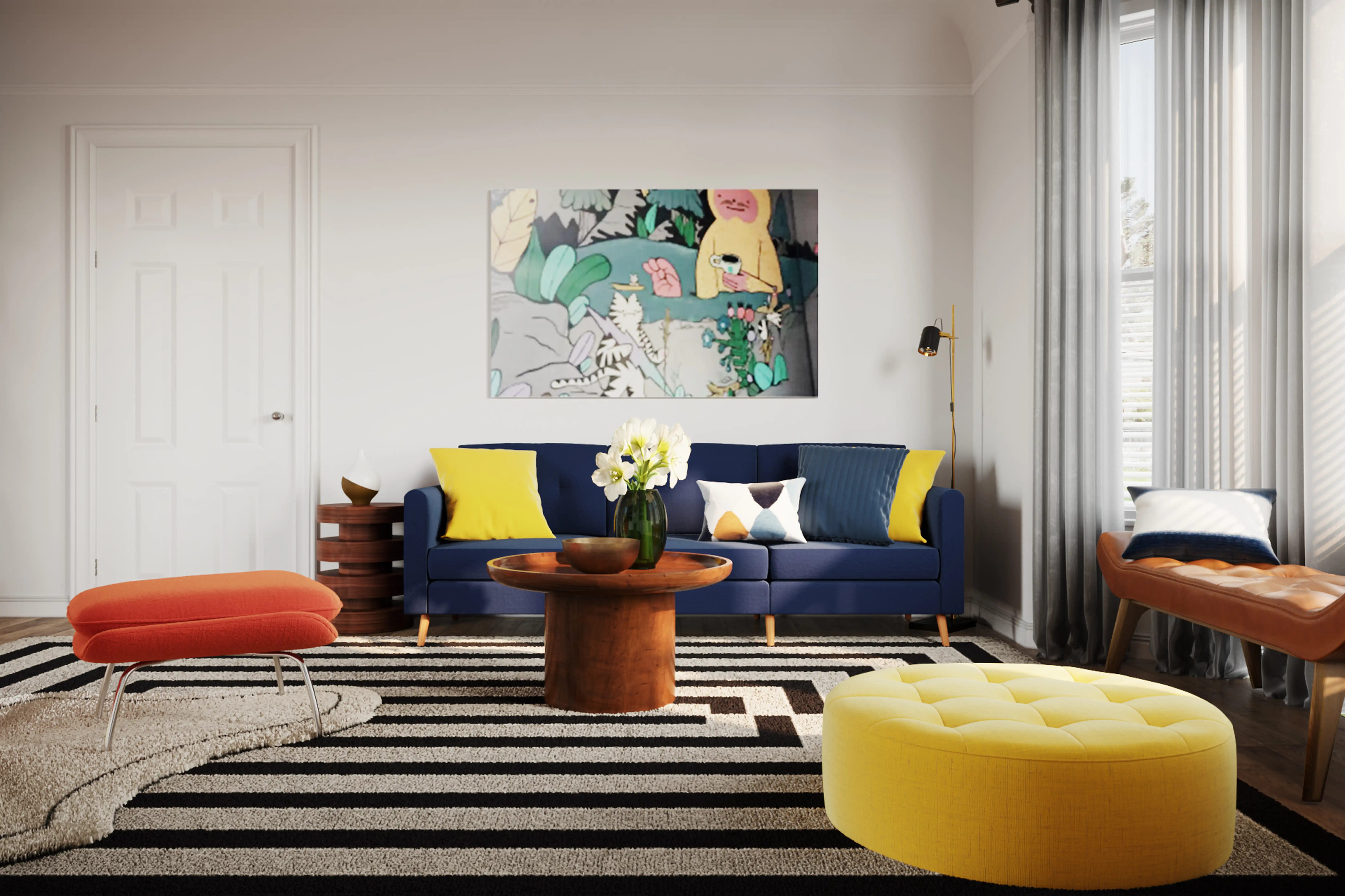 The rug in this space from Wayfair helps add a variety of colors to the room. Discover Rug design inspiration on Havenly.