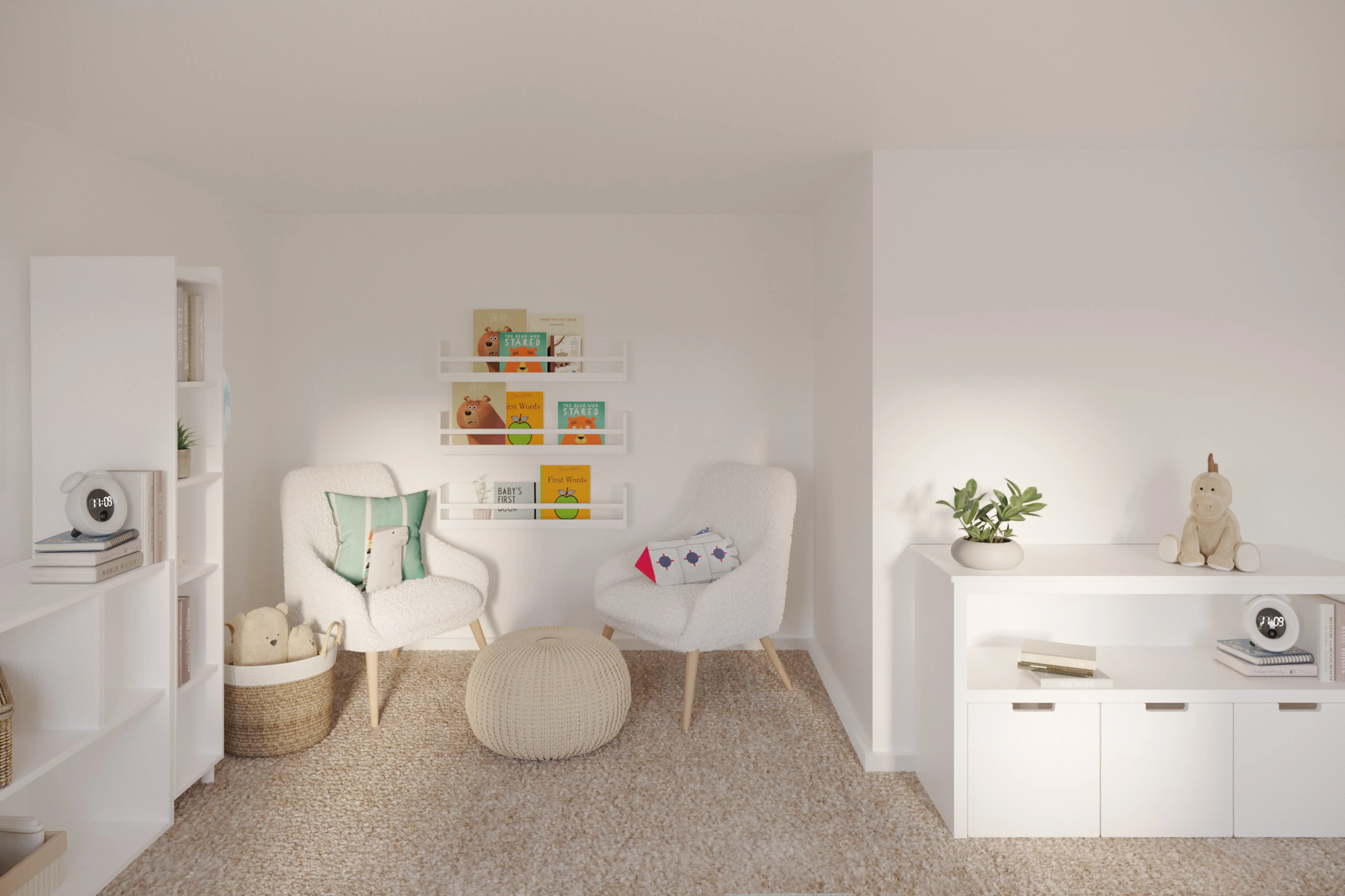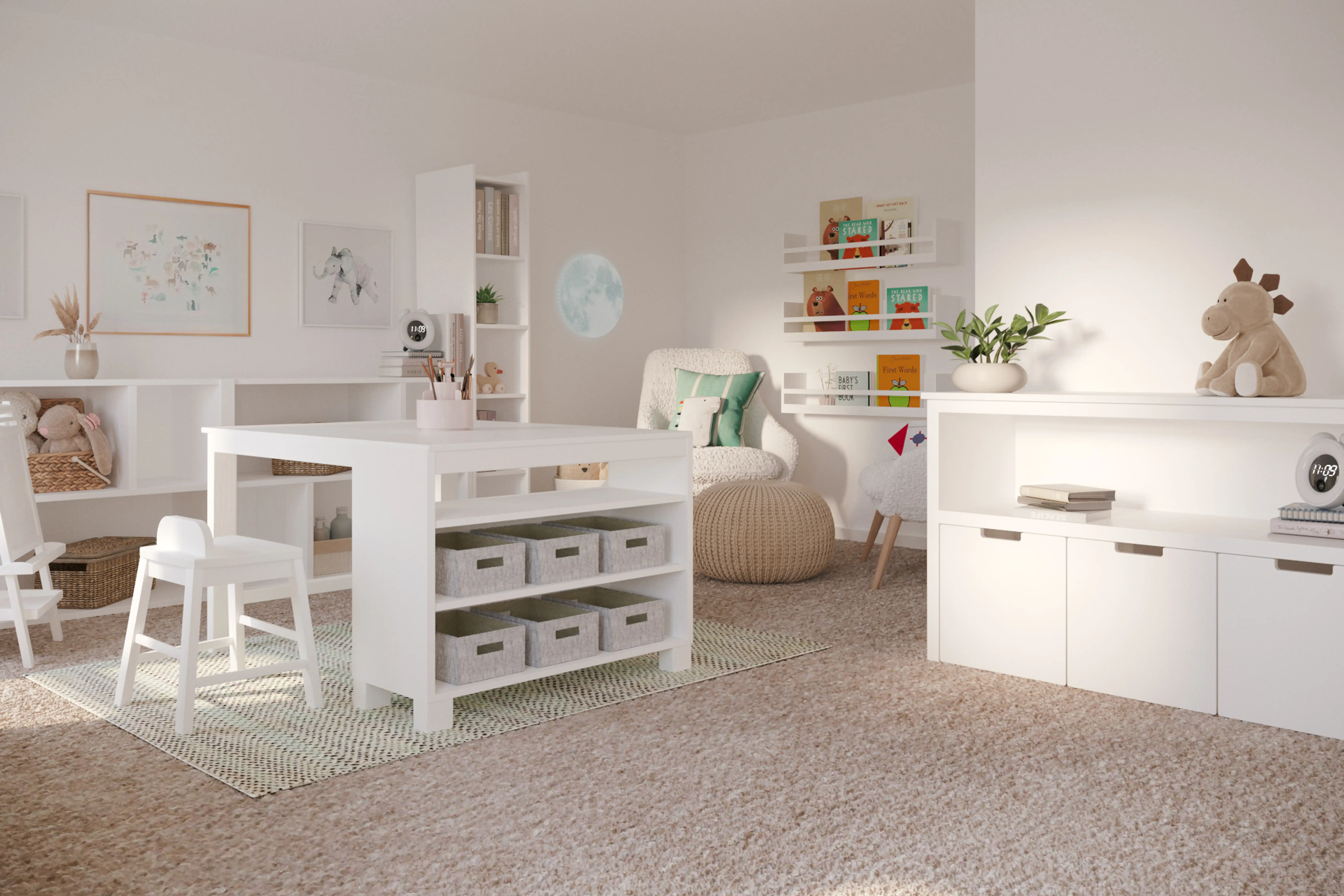 For this room, Barbara selected bookcases, standing shelves, wall shelves, and ledges from Wayfair. Discover Furniture design inspiration on Havenly.