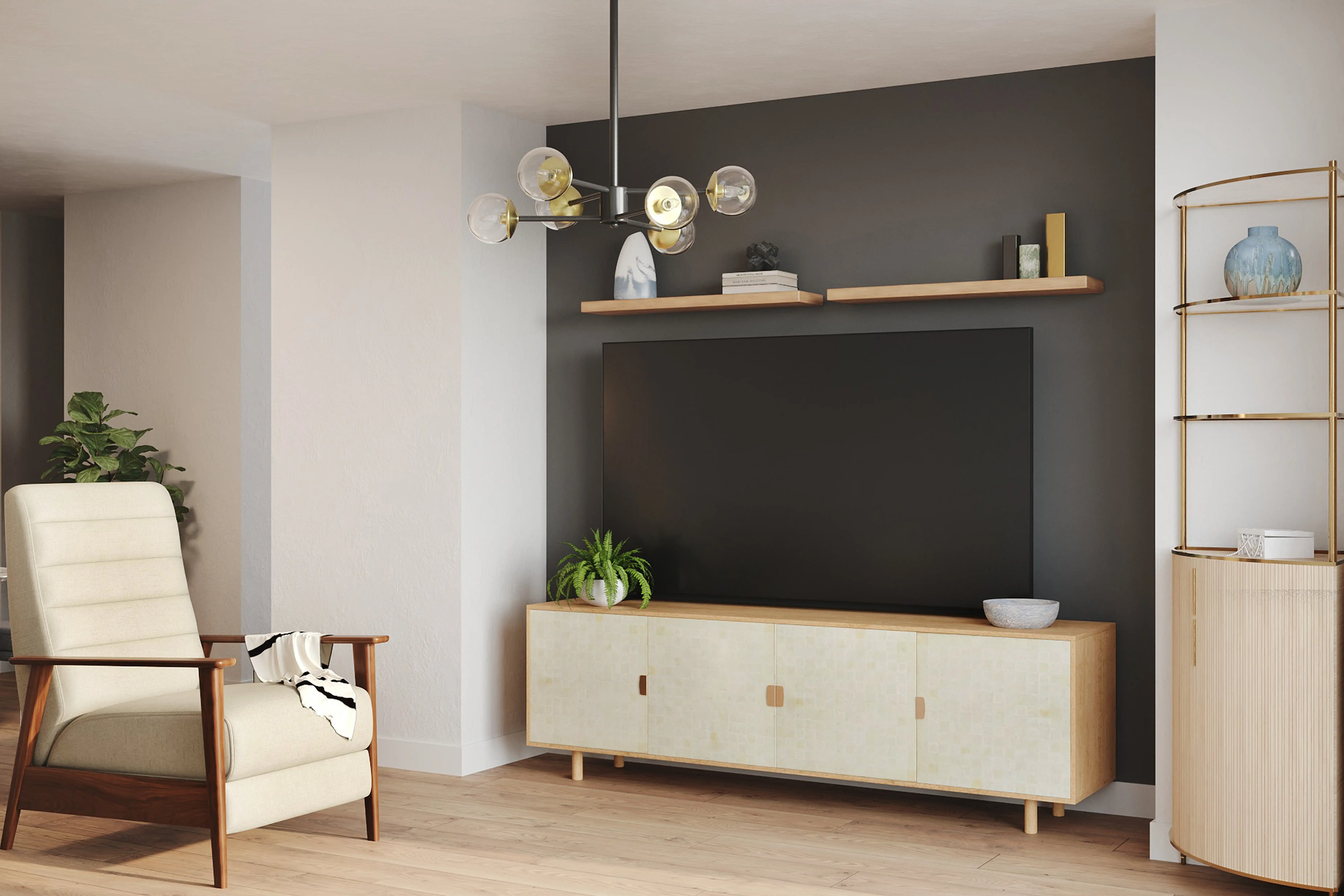 For this Living Room, Angie selected accent tables and desks from Elk Home and West Elm. Discover Furniture design inspiration on Havenly.