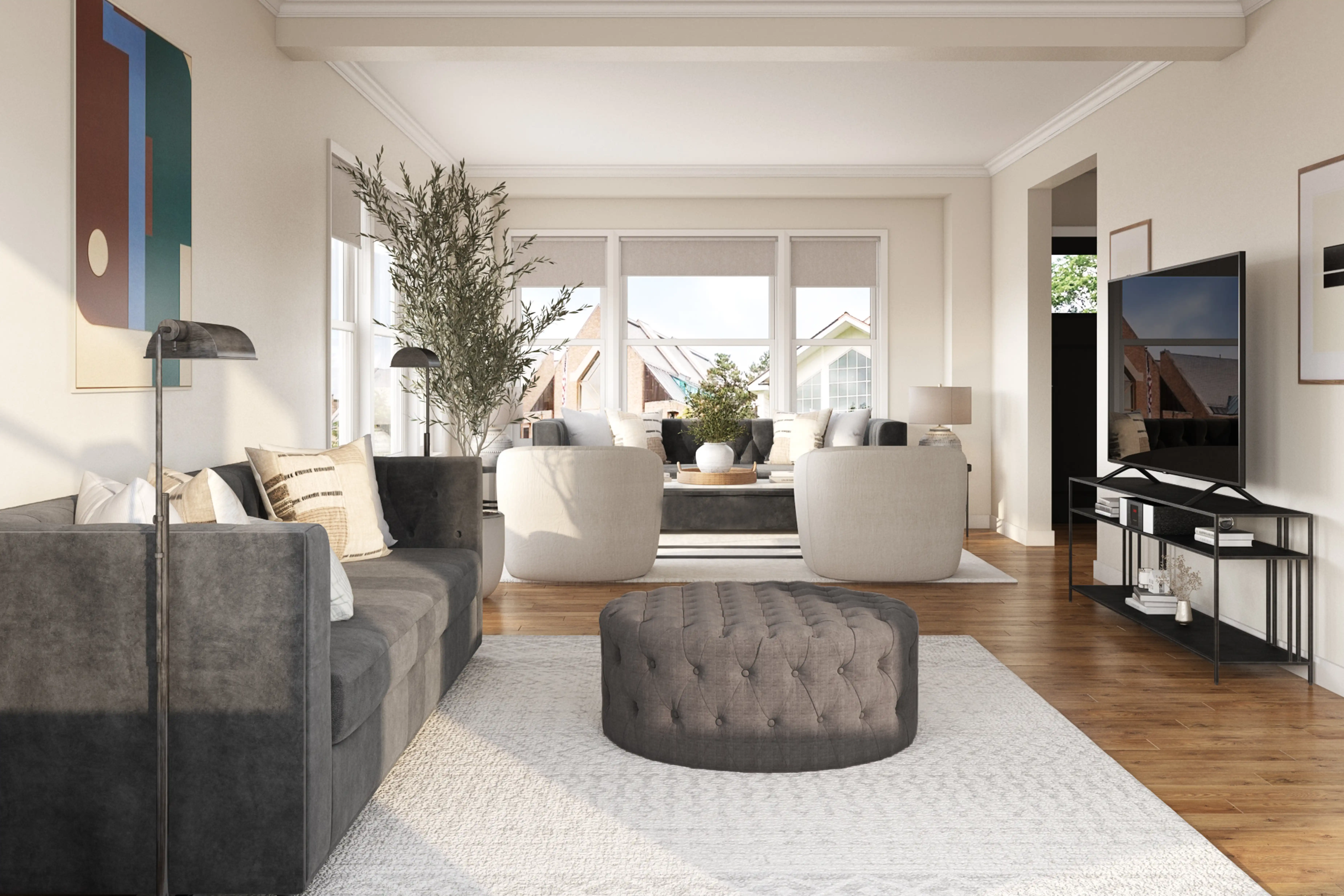 For this Living Room, Florencia selected ottomans and accent tables from Safavieh and West Elm. Discover Furniture design inspiration on Havenly.
