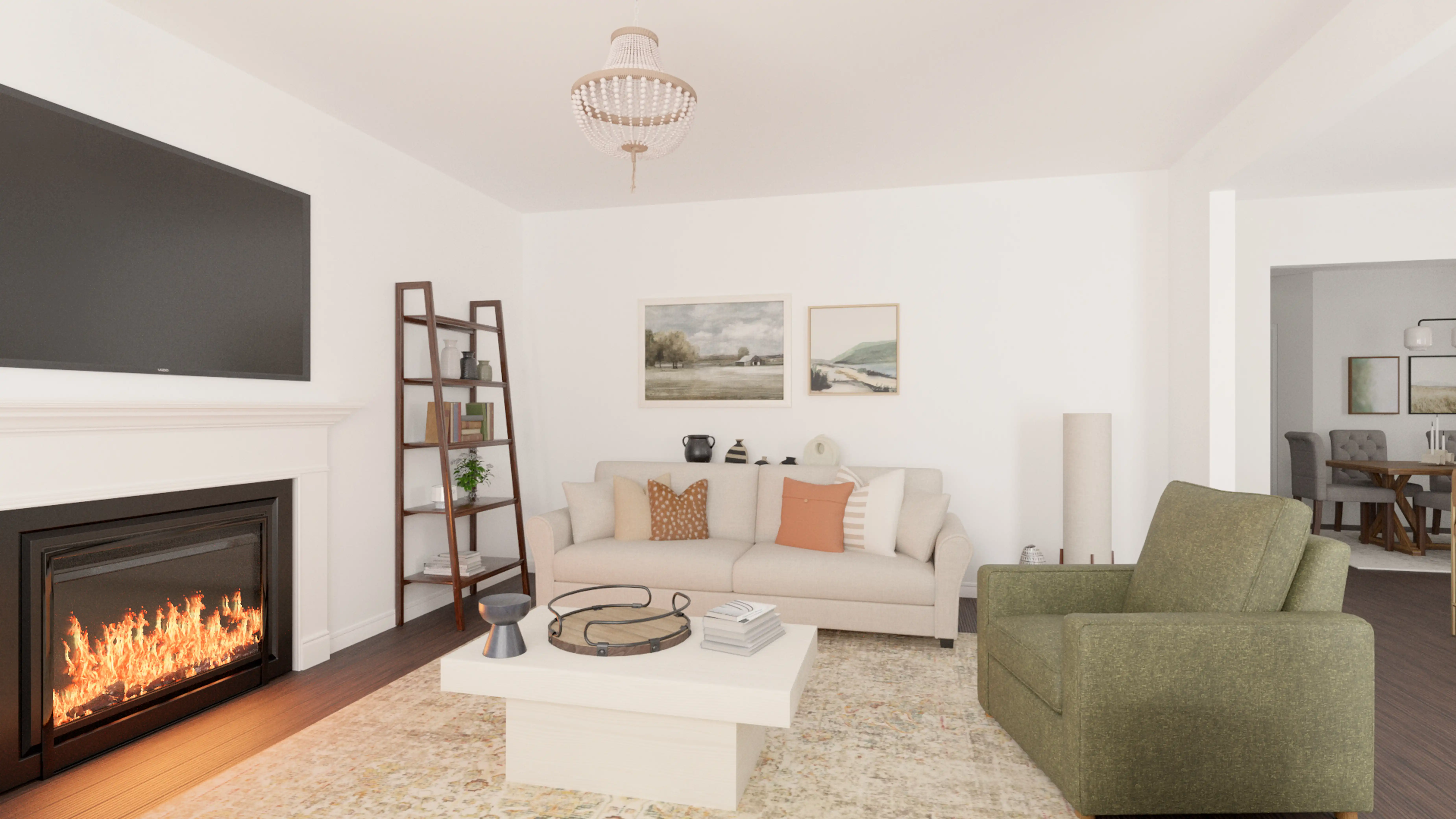 For this Living Room, Ivanna selected kitchen, dining room tables, bookcases, and standing shelves from Wayfair and Butler Specialty Co. Discover Furniture design inspiration on Havenly.