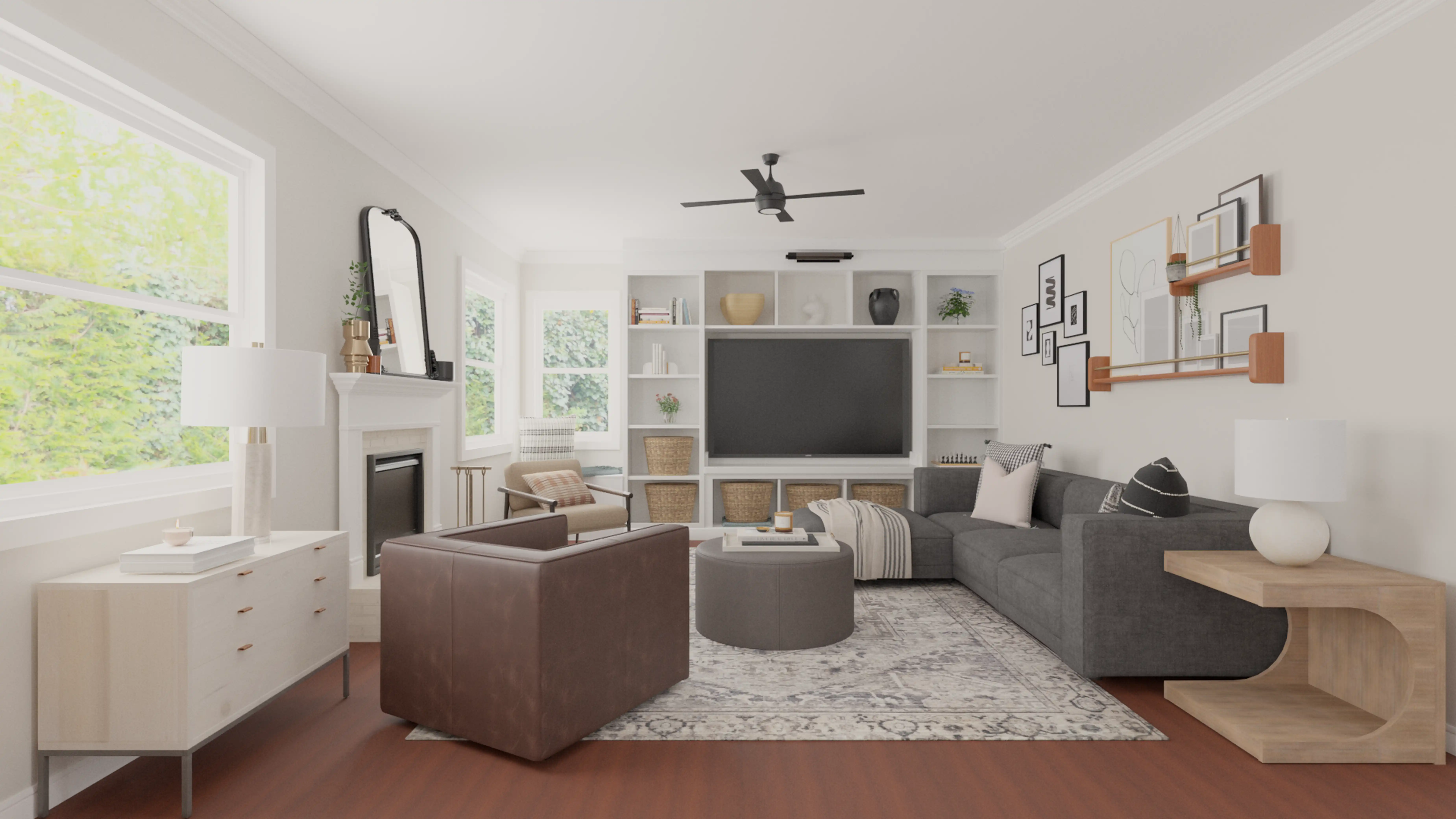For this Living Room, Kait selected ottomans and coffee tables from Interior Define and Article. Discover Furniture design inspiration on Havenly.