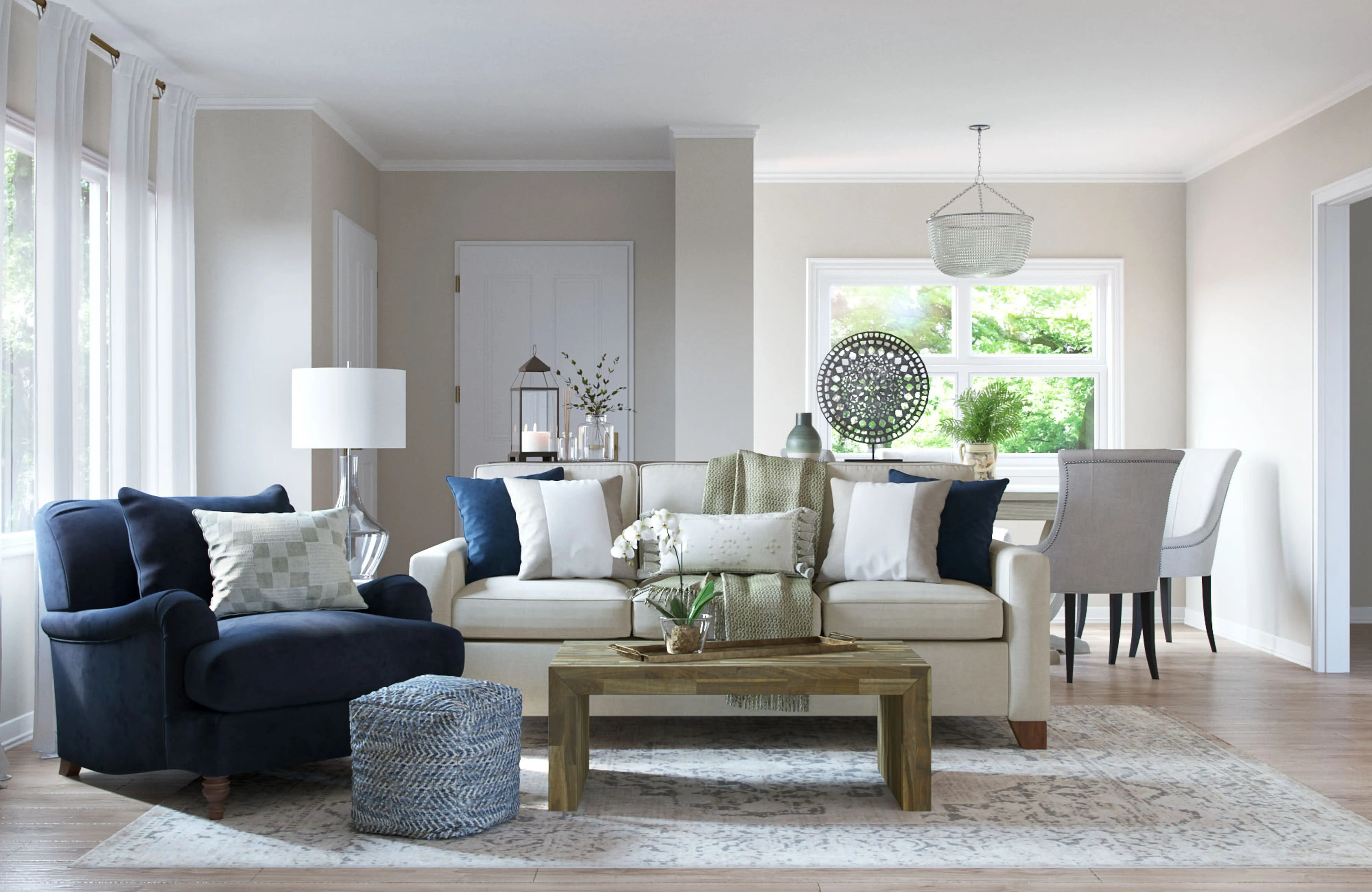 For this room, Tracie selected sofas and coffee tables from Pottery Barn and West Elm. Discover Furniture design inspiration on Havenly.