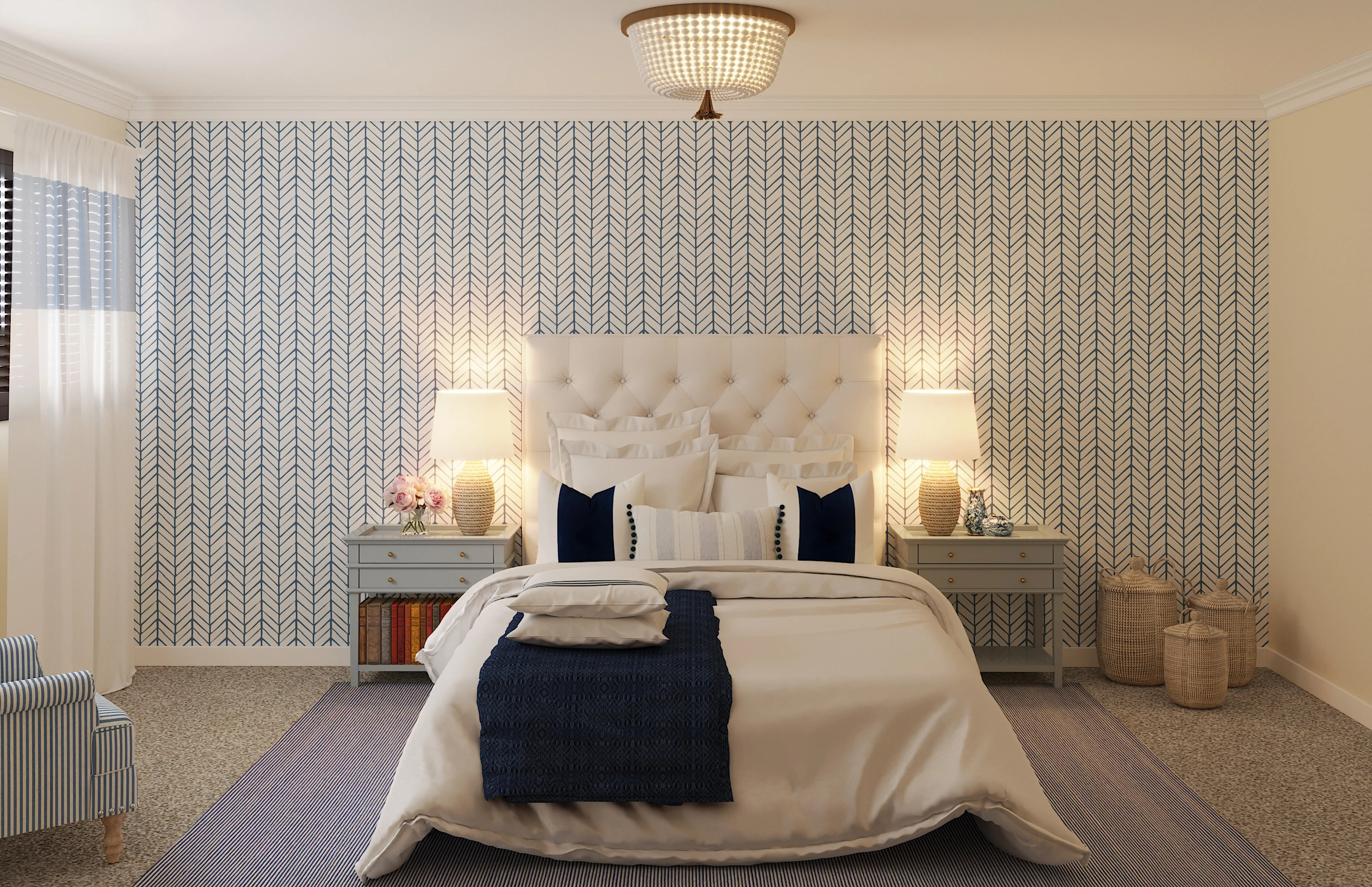 For this Bedroom, Eliza selected folding chairs, stools, headboards, and footboards from Pottery Barn and Ballard Designs. Discover Furniture design inspiration on Havenly.