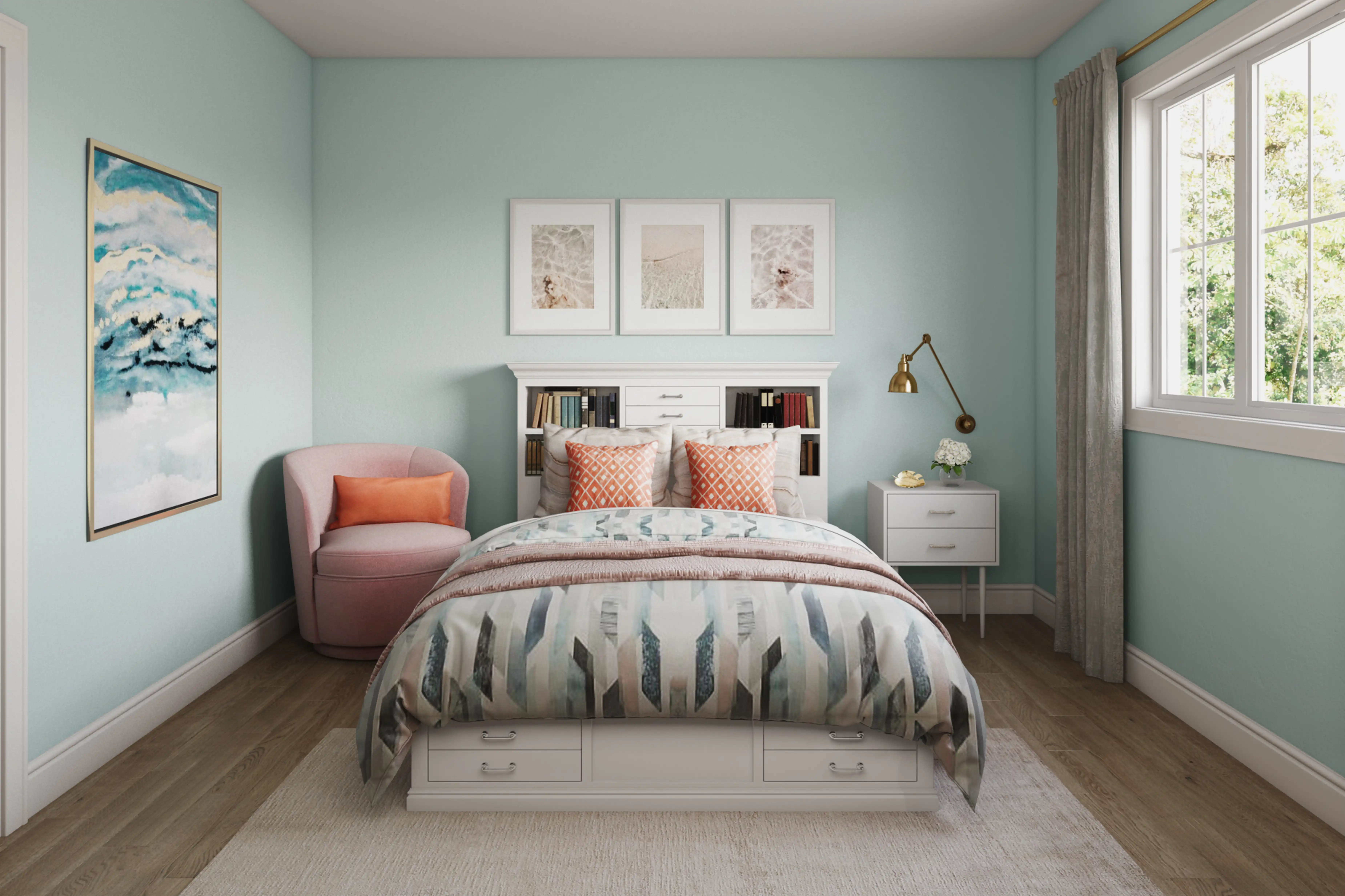 For this Bedroom, Erin selected wall shelves, ledges, and desks from CB2 and AllModern. Discover Furniture design inspiration on Havenly.