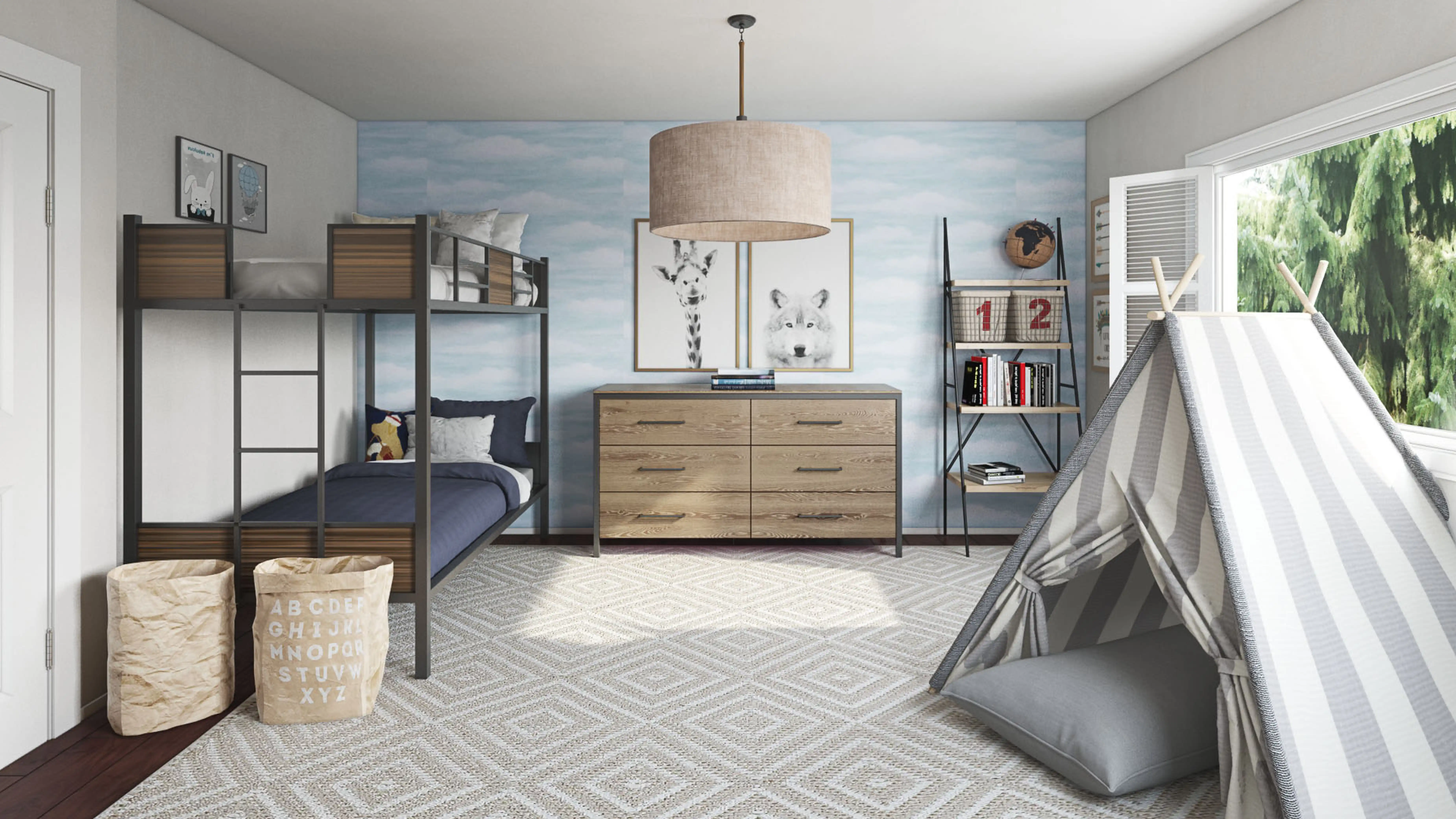 For this Bedroom, Leah selected dressers, bookcases, and standing shelves from Home Depot and Wayfair. Discover Furniture design inspiration on Havenly.