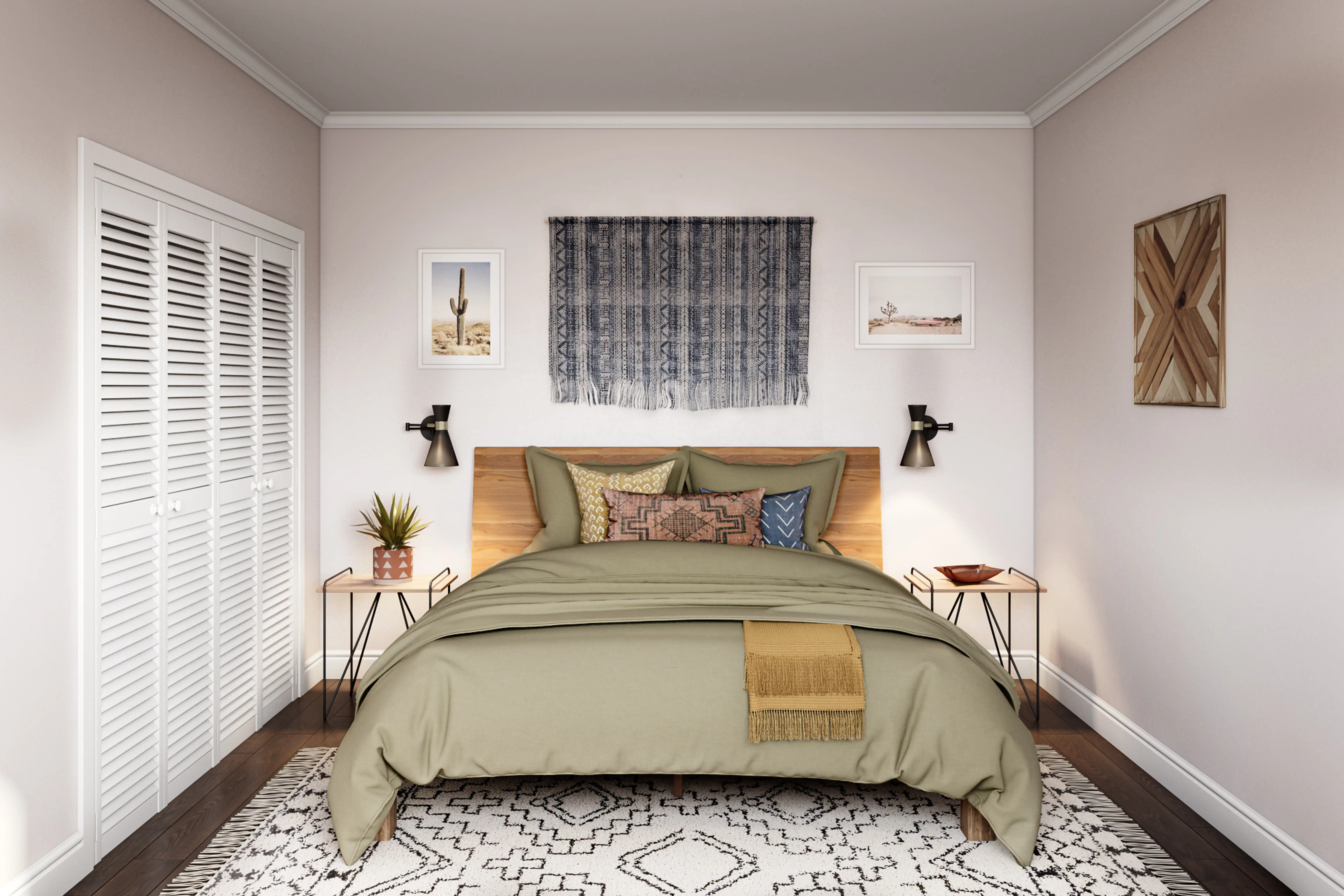 To brighten the design, Bohemian wall light fixtures were added to the room. Discover Lighting design inspiration on Havenly.
