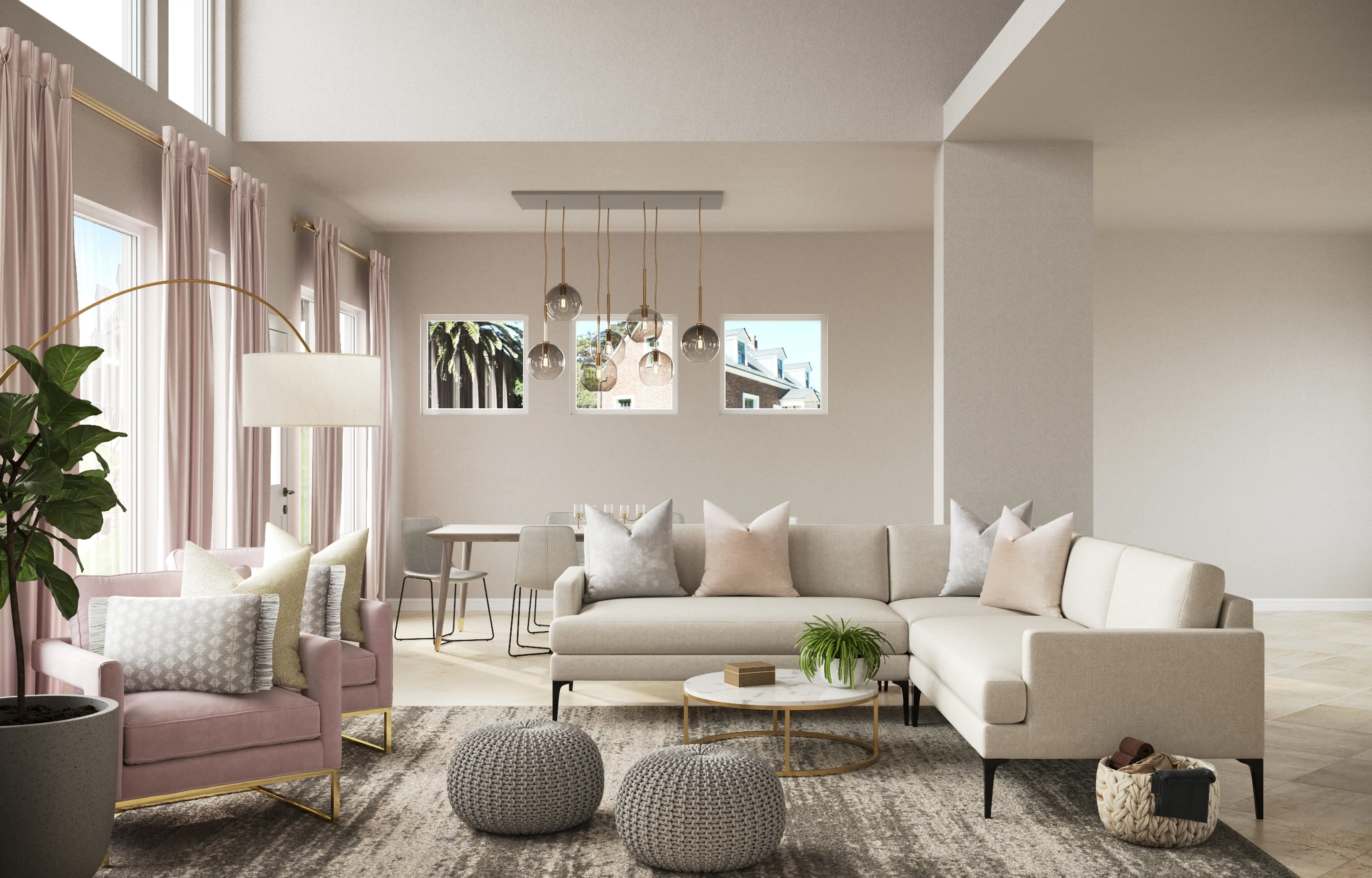 For this Living Room, Karen selected kitchen, dining room tables, and poufs from Crate, Barrel, and CB2. Discover Furniture design inspiration on Havenly.