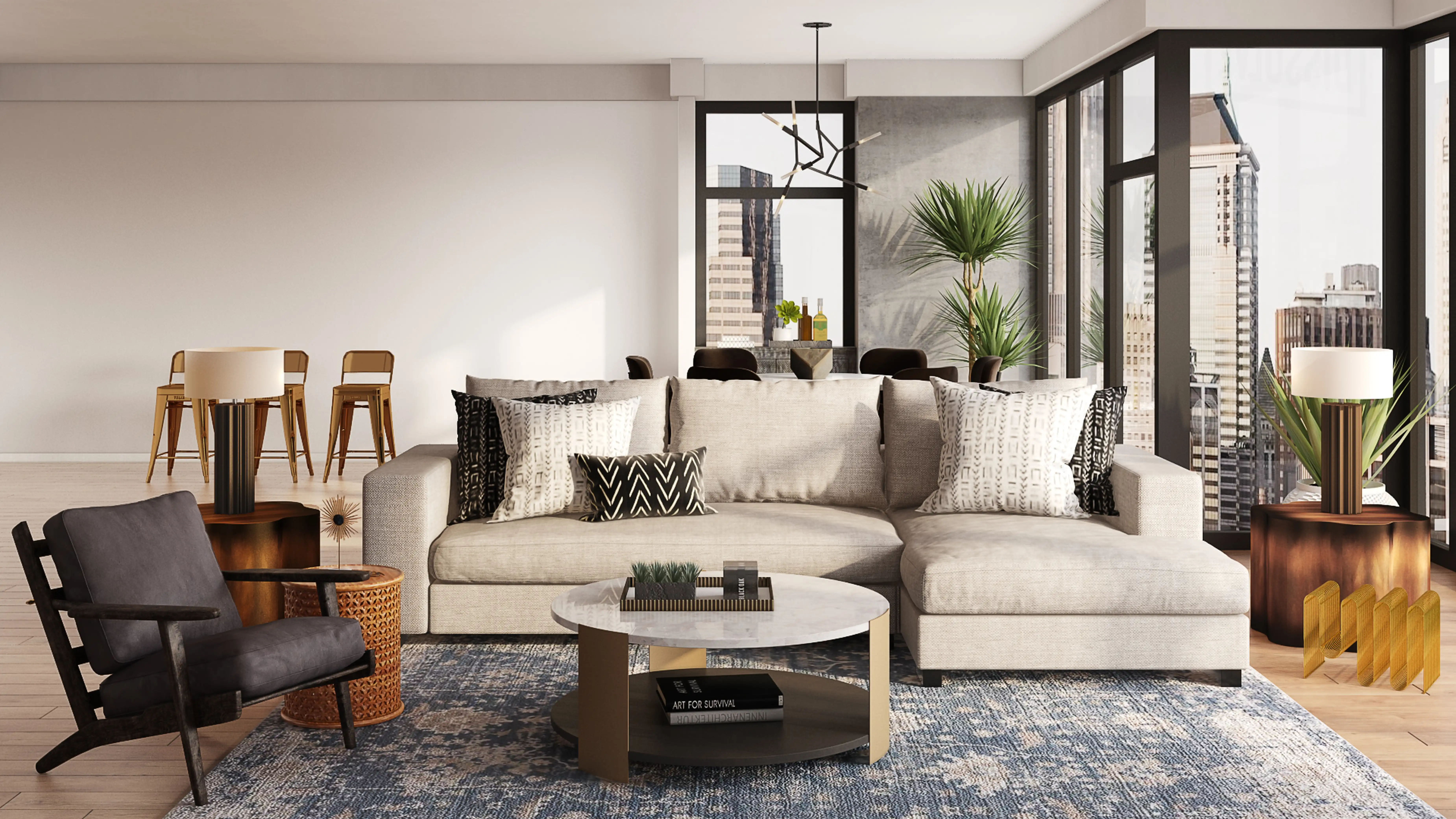 For this room, Levi selected end tables, kitchen, and dining room tables from Uttermost and West Elm. Discover Furniture design inspiration on Havenly.