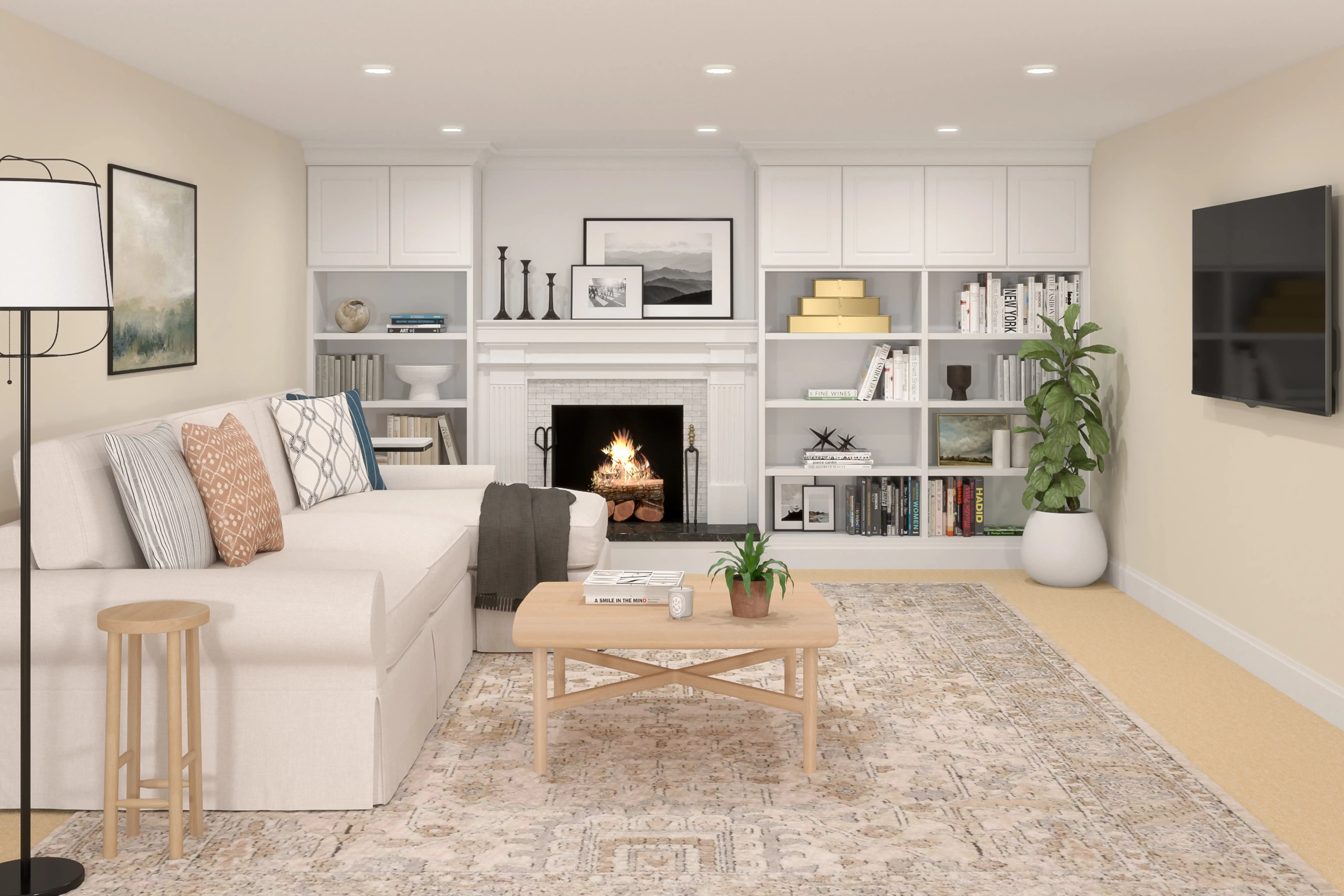 The rug in this space from Loloi Rugs helps add a variety of colors to the room. Discover Rug design inspiration on Havenly.