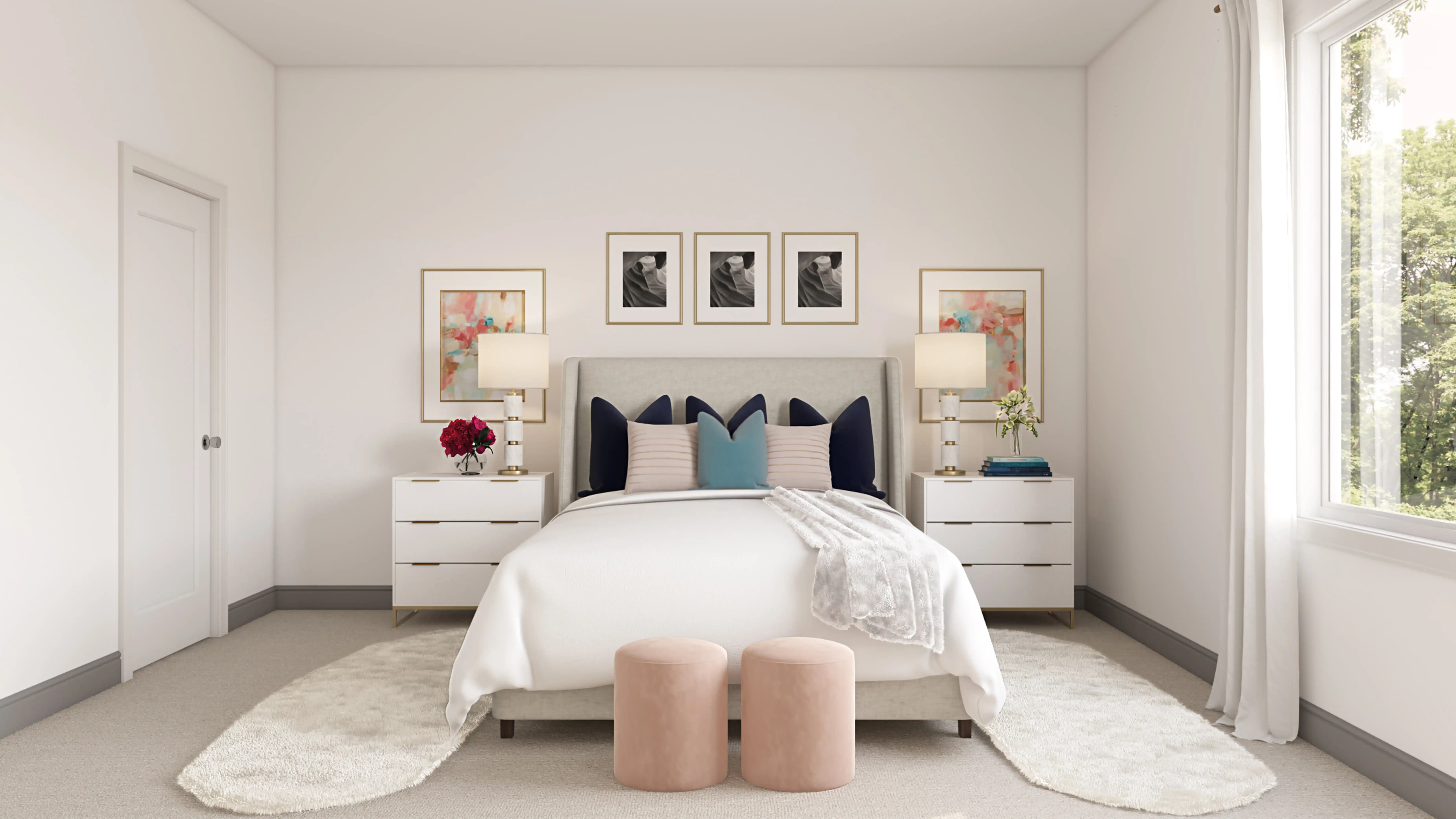 For this Bedroom, Kelcy selected ottomans, beds, and bed frames from West Elm and Wayfair. Discover Furniture design inspiration on Havenly.