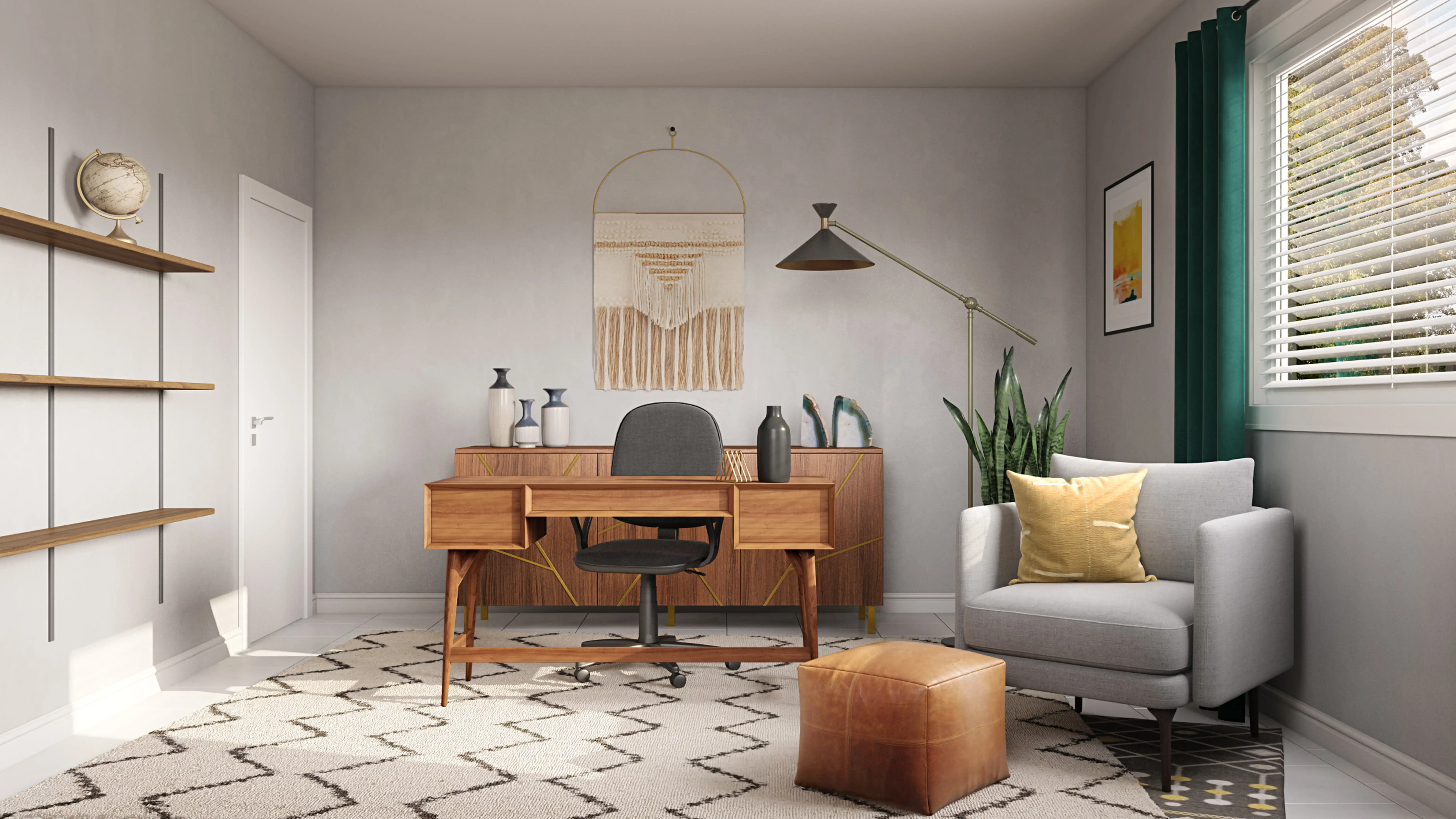 For this room, Alexandra selected poufs and desks from CB2 and West Elm. Discover Furniture design inspiration on Havenly.
