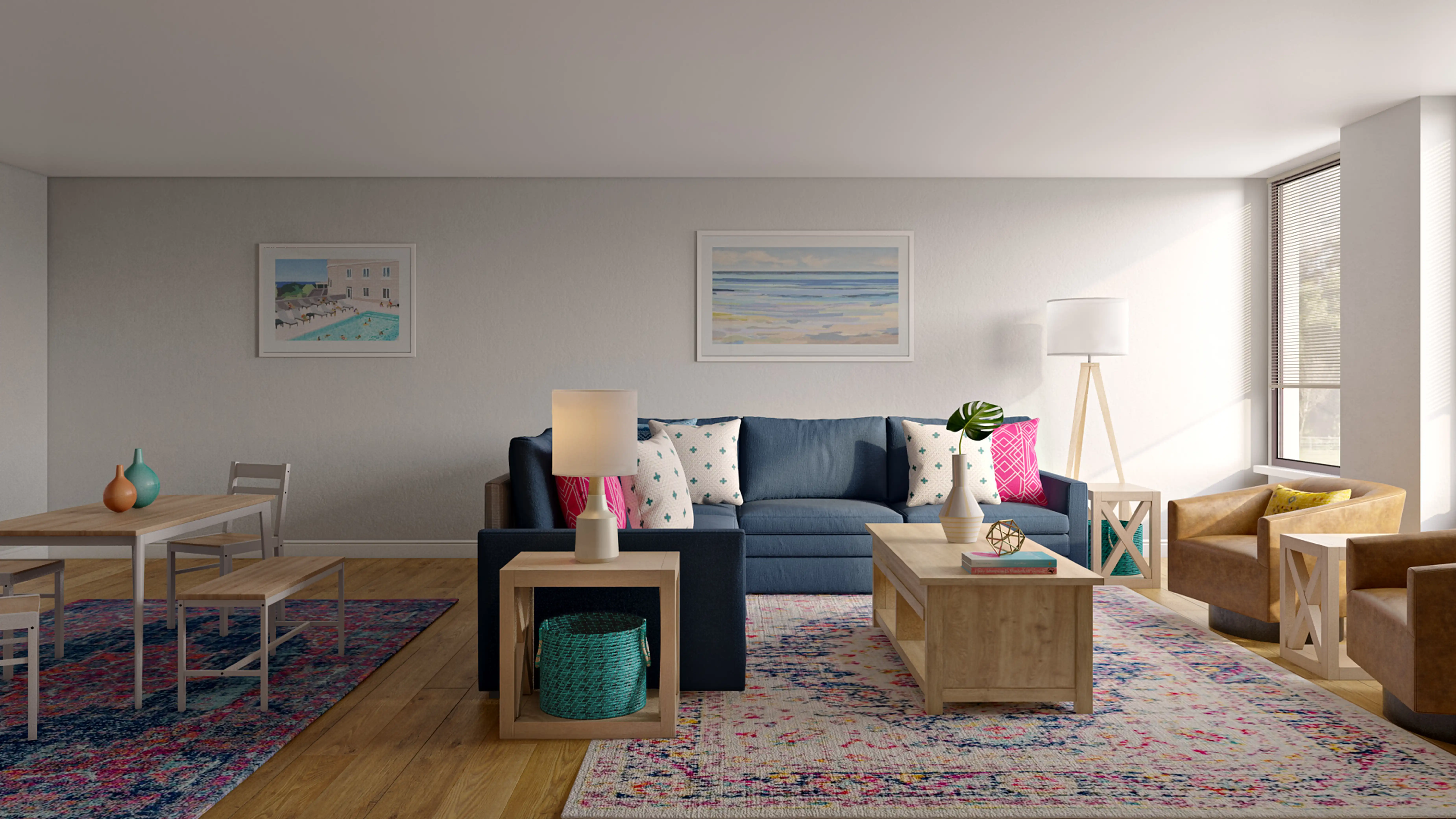 No room is complete without baskets and candles! Mixing up polypropylene and synthetic with teal and ivory helps to add the finishing touches to the Living Room. Discover Decor & Pillow design inspiration on Havenly.