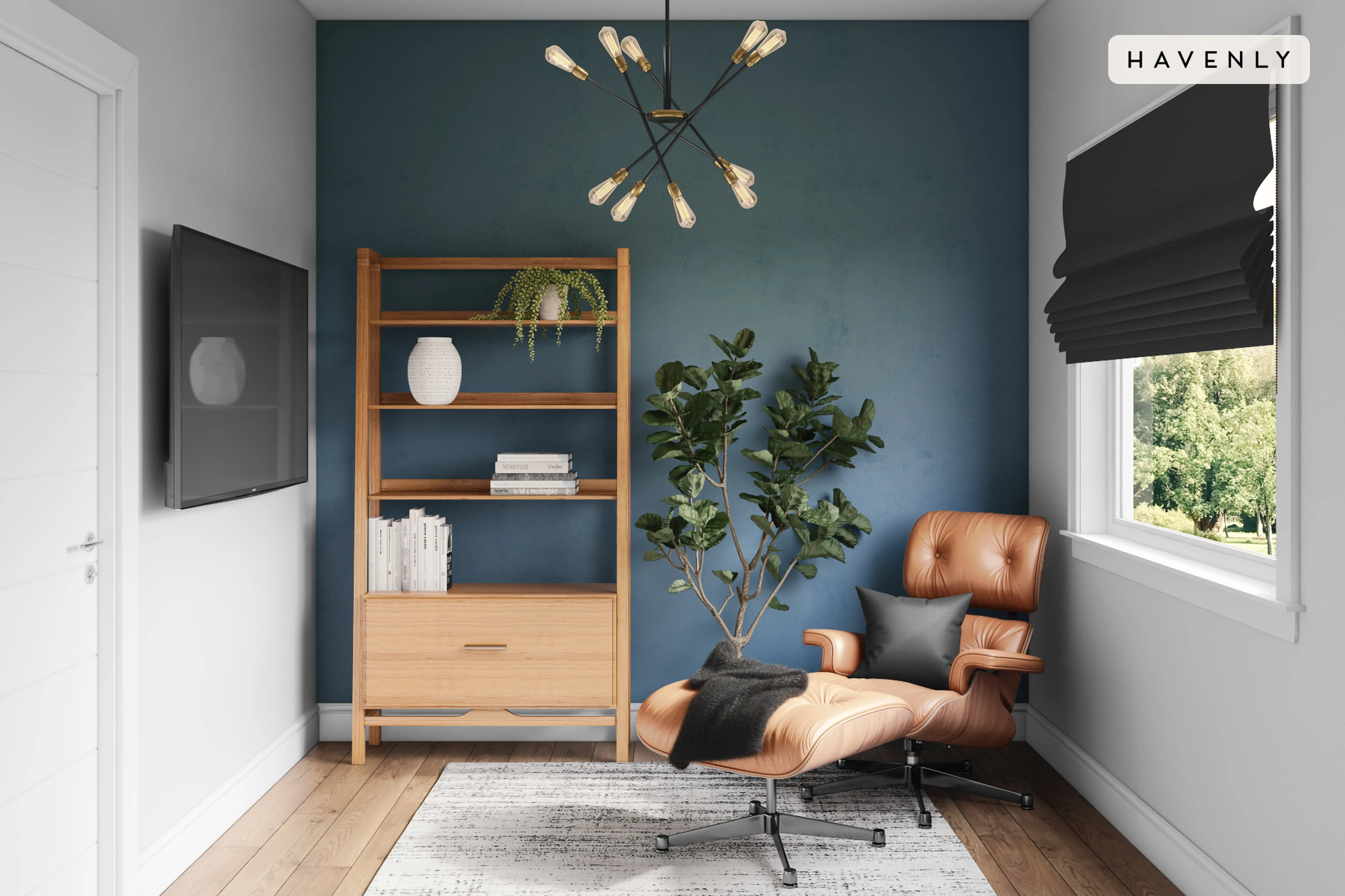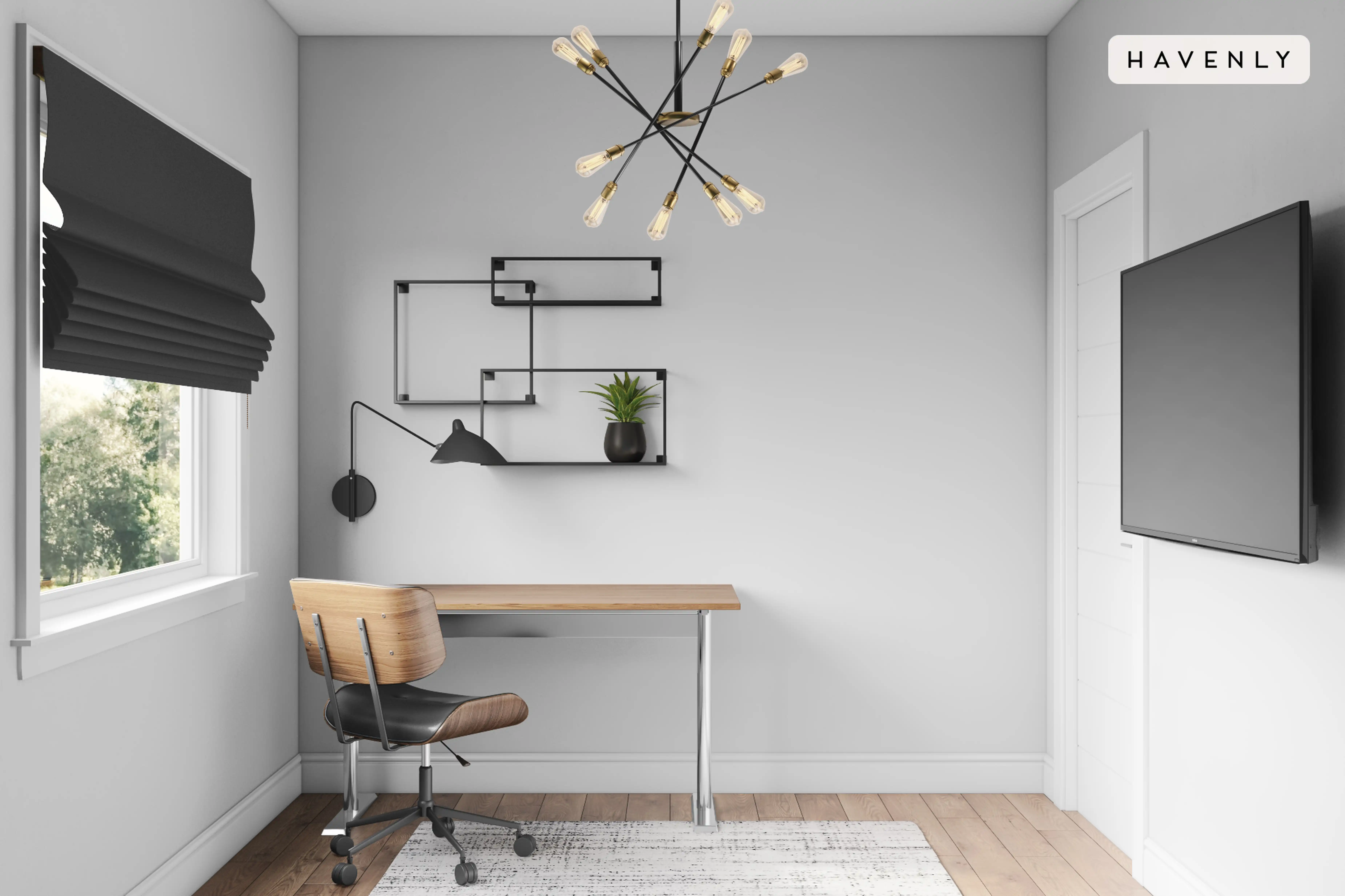 For this Office, Fiorella selected office chairs, bookcases, and standing shelves from Hollis Modern and West Elm. Discover Furniture design inspiration on Havenly.