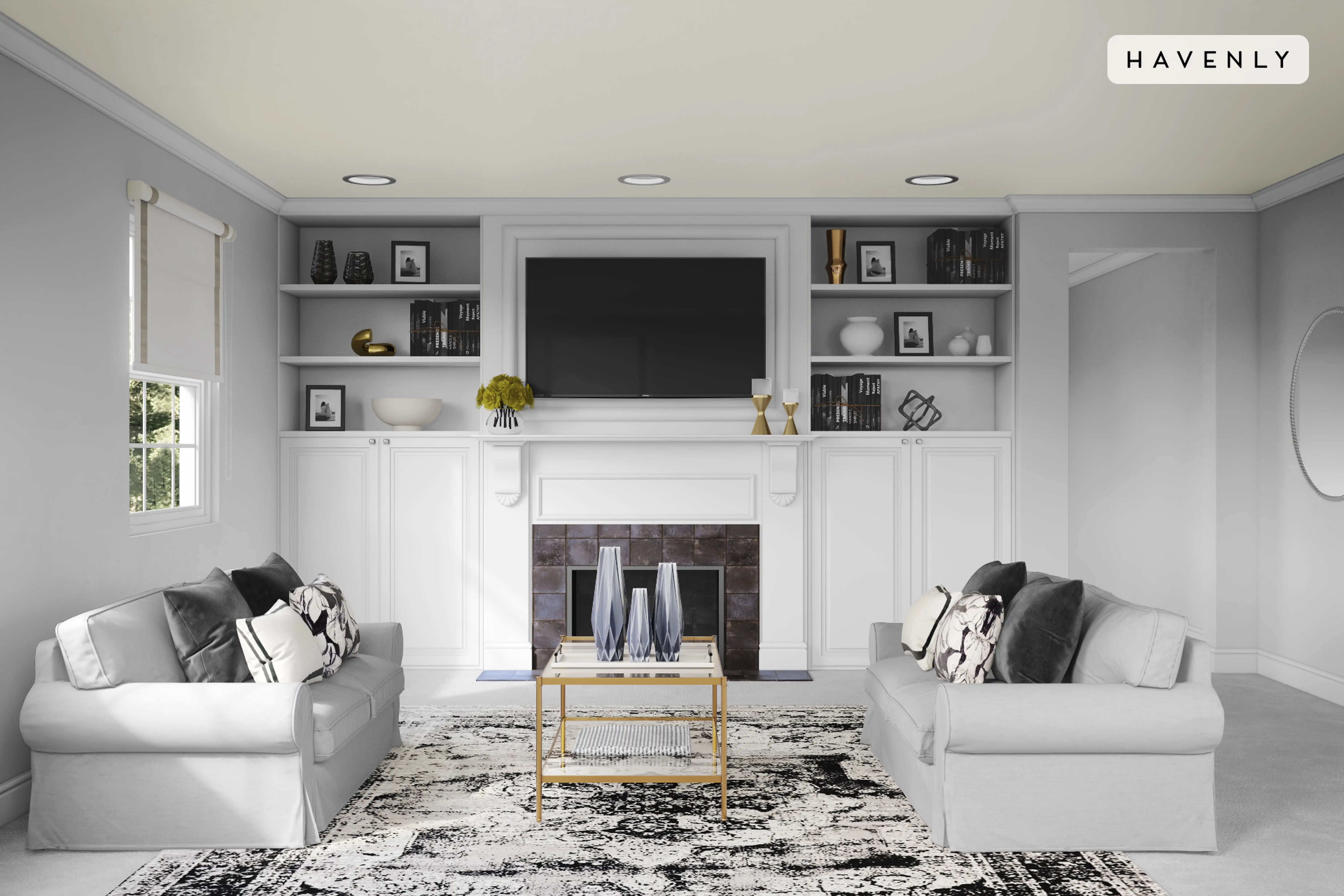 No room is complete without window blinds, shades, and mirrors! Mixing up cotton, iron, and mirror with gray, white, and silver helps to add the finishing touches to the Living Room. Discover Decor & Pillow design inspiration on Havenly.