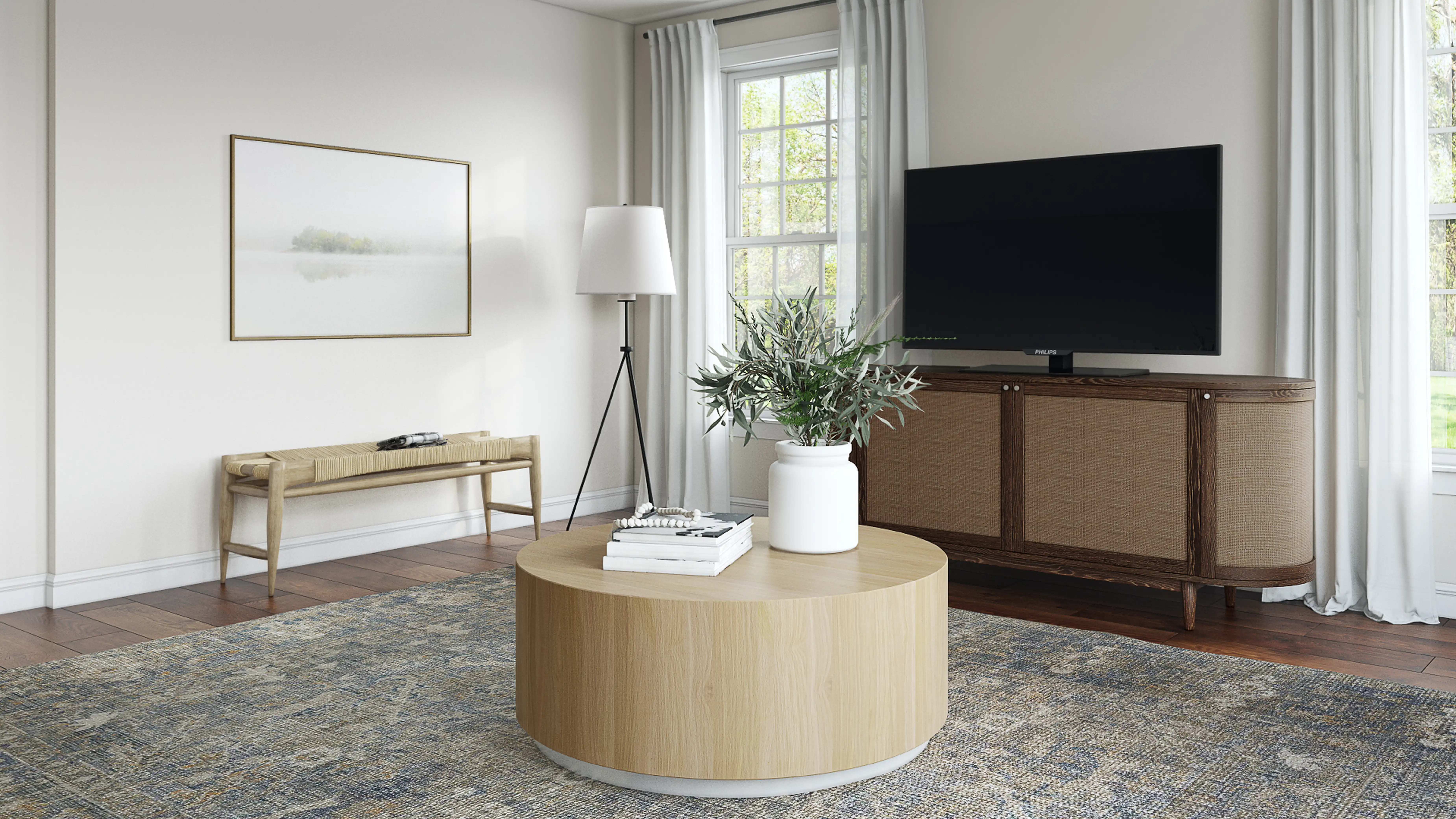 For this room, Sarah selected end tables and benches from Lamps Plus, McGee, and Co. Discover Furniture design inspiration on Havenly.