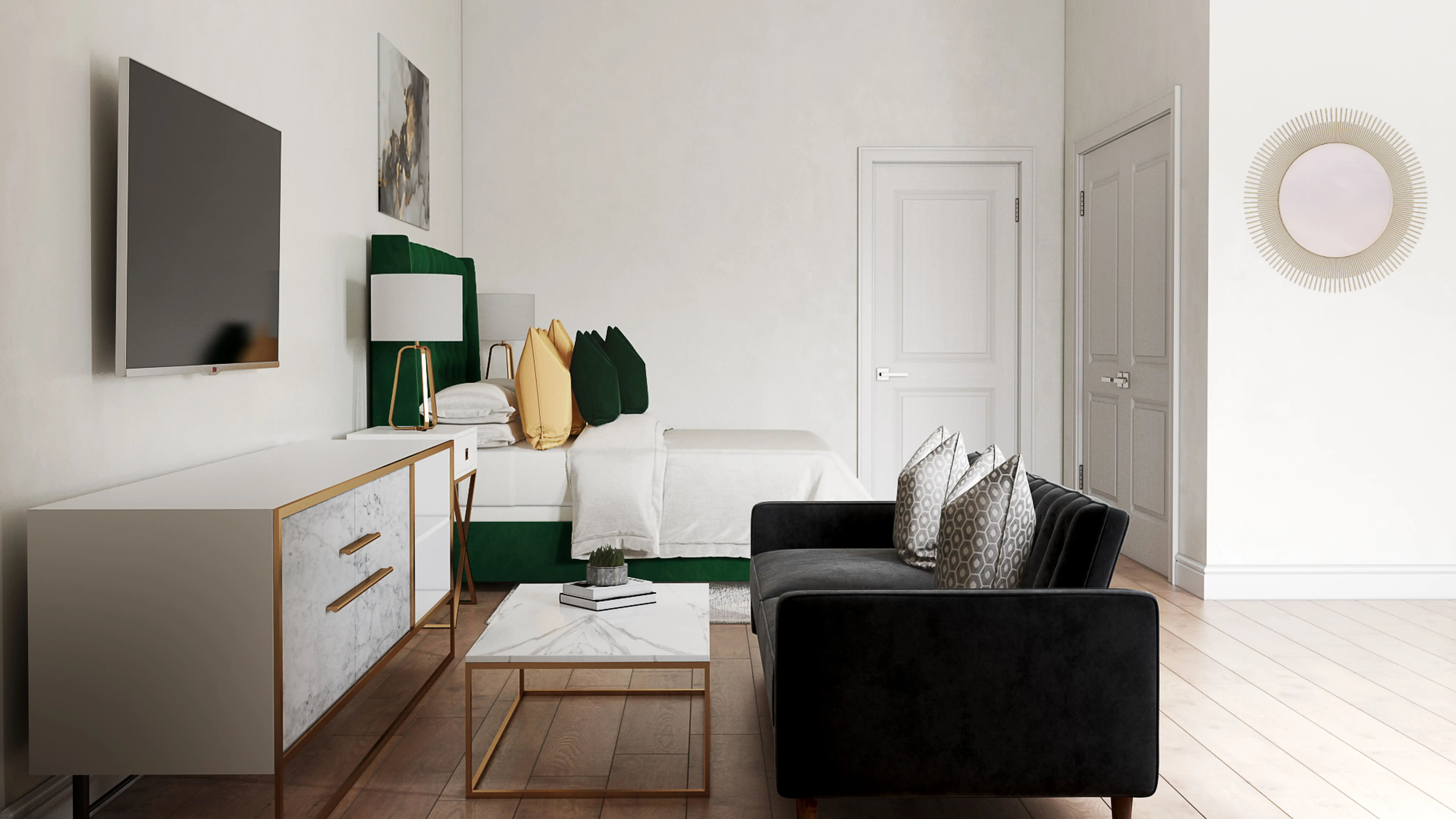 No room is complete without bed sheets and mirrors! Mixing up cotton and metal with blackwhite with black trimwhite with black trim and gold helps to add the finishing touches to the Studio. Discover Decor & Pillow design inspiration on Havenly.