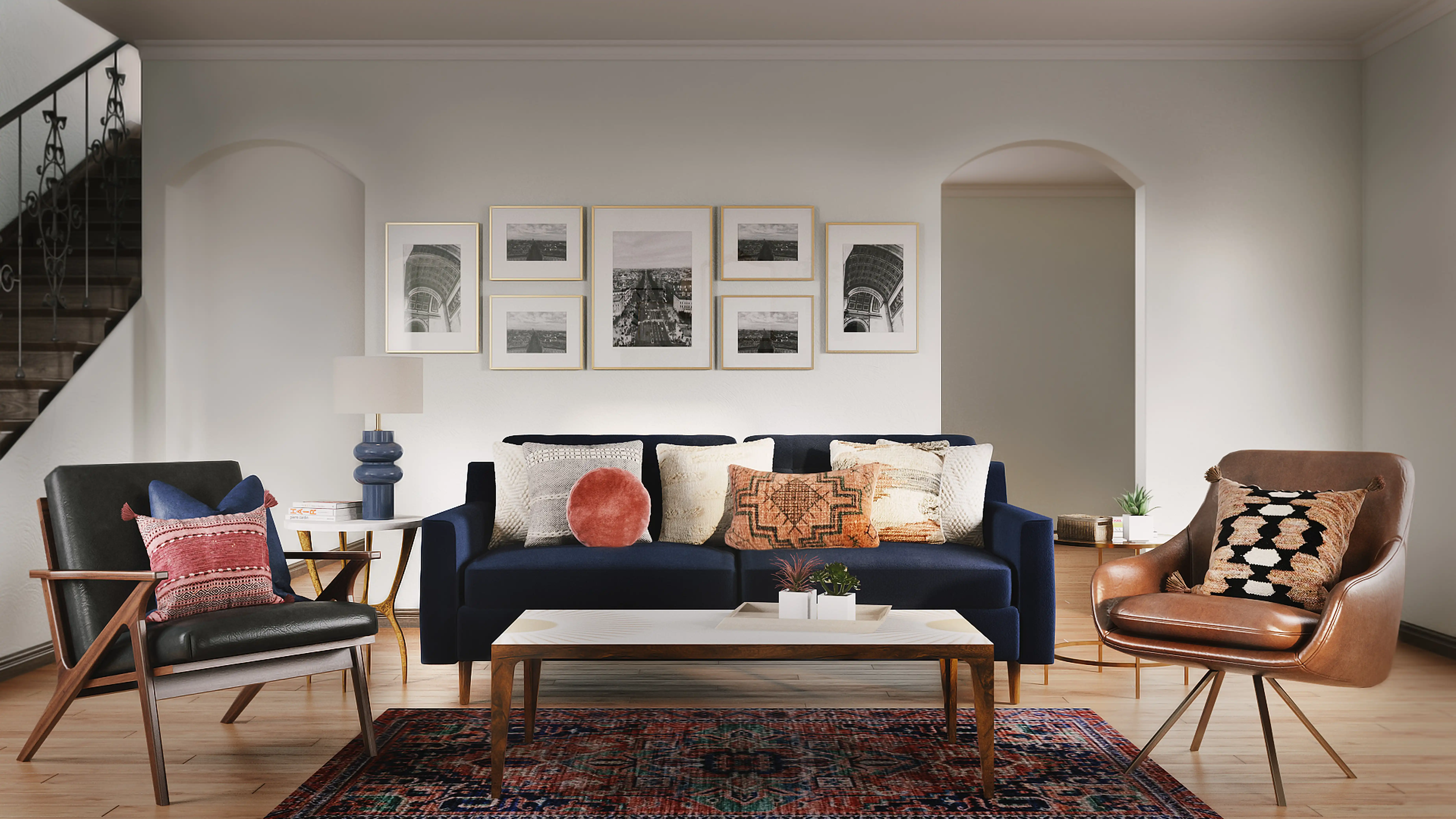 For this Living Room, Teresa selected end tables, bookcases, and standing shelves from Wayfair. Discover Furniture design inspiration on Havenly.